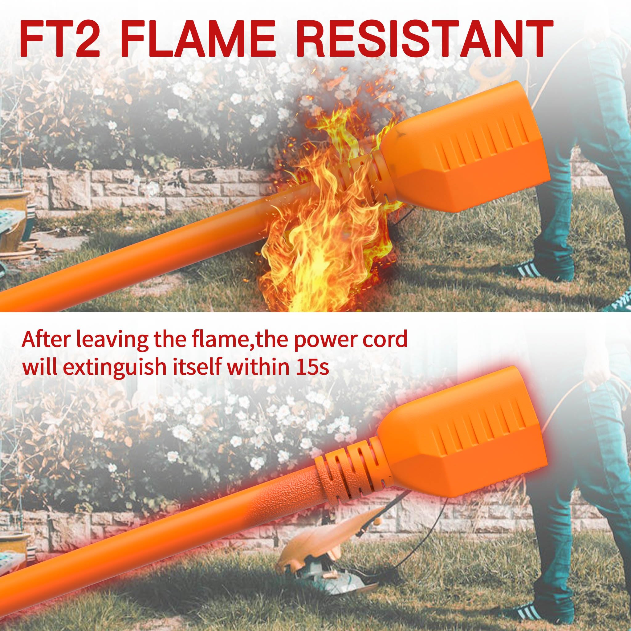 Weatherproof & Abrasion-resistant: 50ft extension cord designed to withstand the elements; 50 foot extension cord is waterproof and weatherproof; Confidently use orange extension cord outside without worrying about damage caused by wind, sun UV,rain, snow, or extreme temperatures; It's abrasion-resistant to combat drag when you're on rough and rugged surfaces