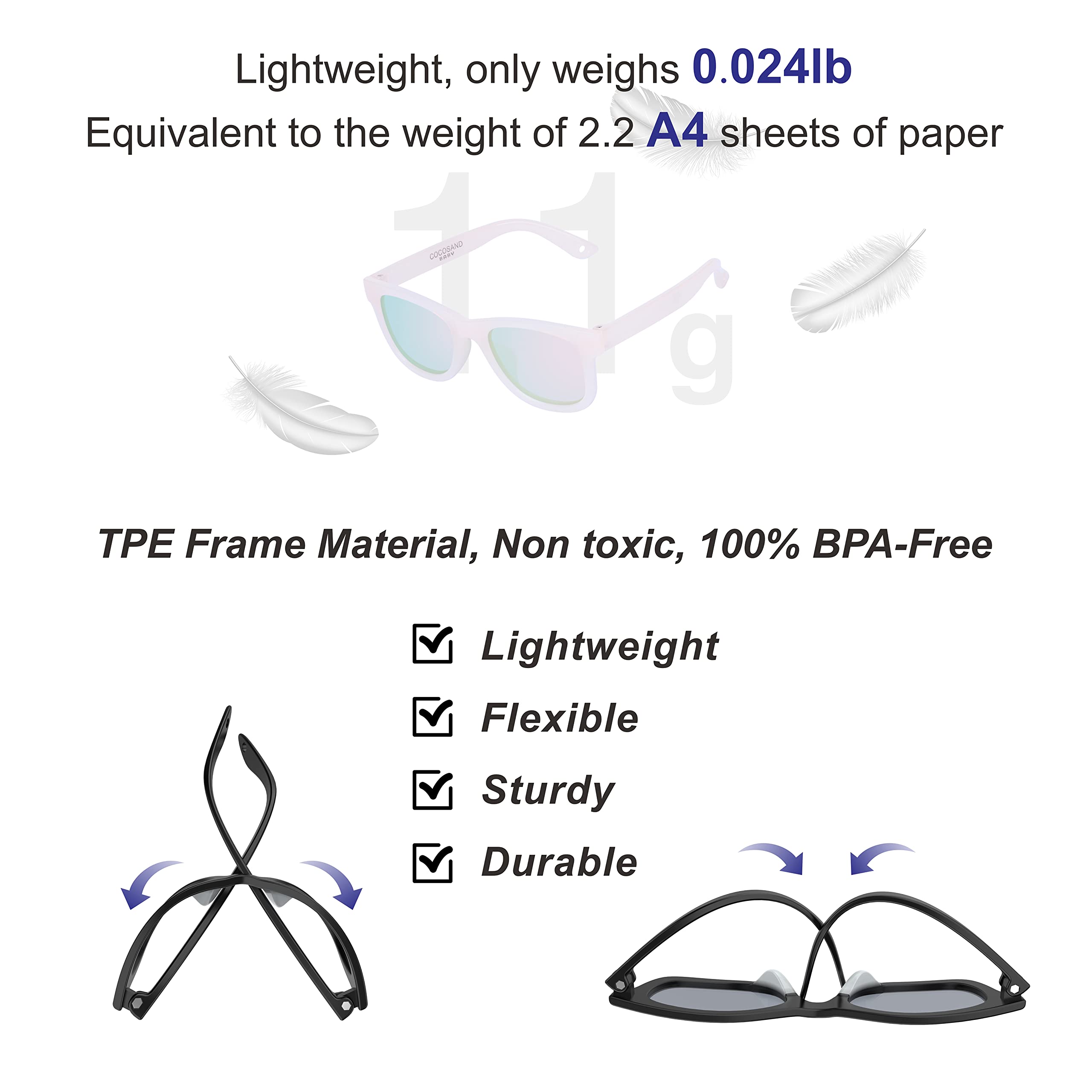 Lens: Polarized lenses. Blocks UVA, UVB and harmful blue ray. HD vision, Glare Free. Wearing it in outdoor activities can reduce eye fatigue, reduce the damage caused by sunlight to baby's eyes