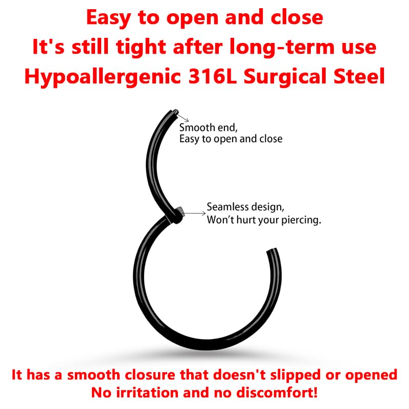 ⭐【Secure Fit & Easy to Use】Includes L-shaped, corkscrew, and straight studs so you can find what fits best—especially if your piercing is slightly angled or uneven. Hinged segment hoops click in place smoothly and stay closed, no slipping or falling out.