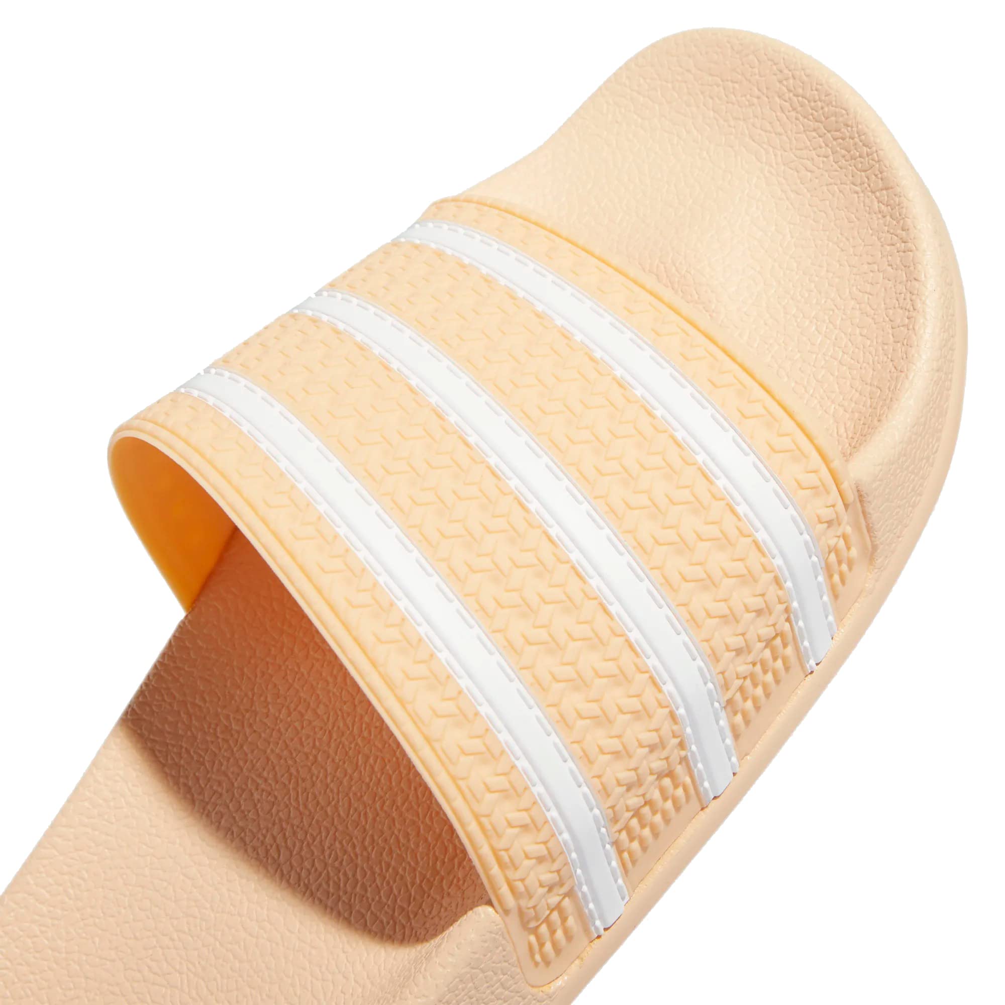 Description These Adilette Aqua Slides bring welcome comfort to tired feet. They have a one-piece molded EVA upper and a plush Cloudfoam footbed. Hit the shower in adidas 3-Stripes.