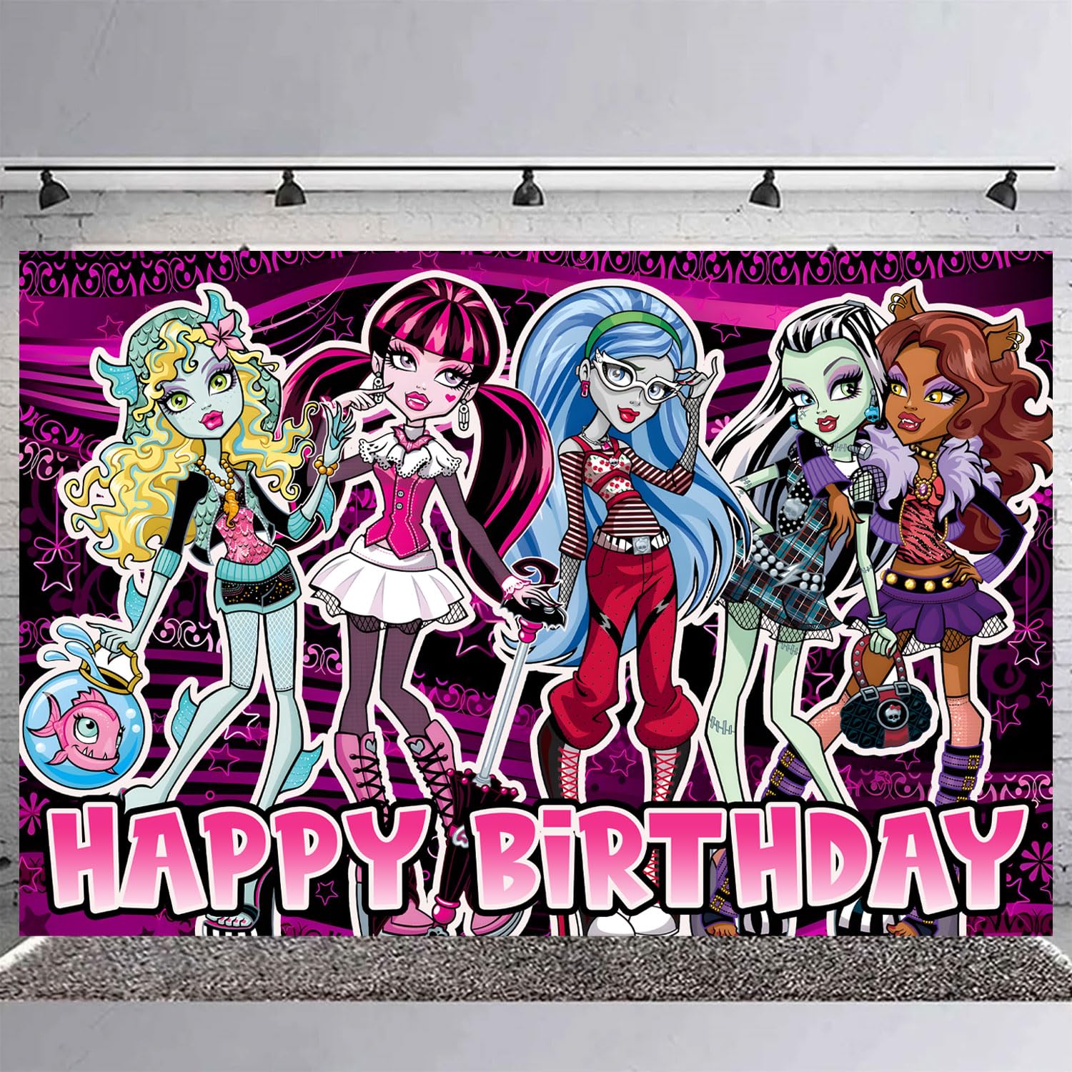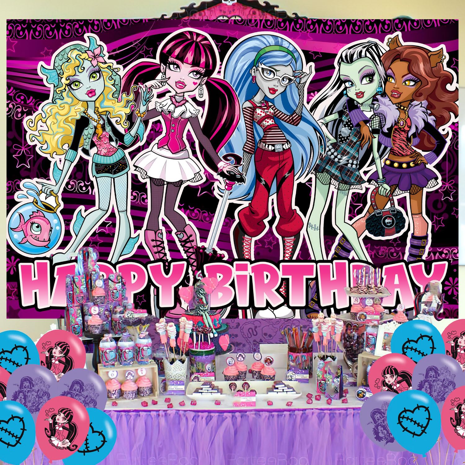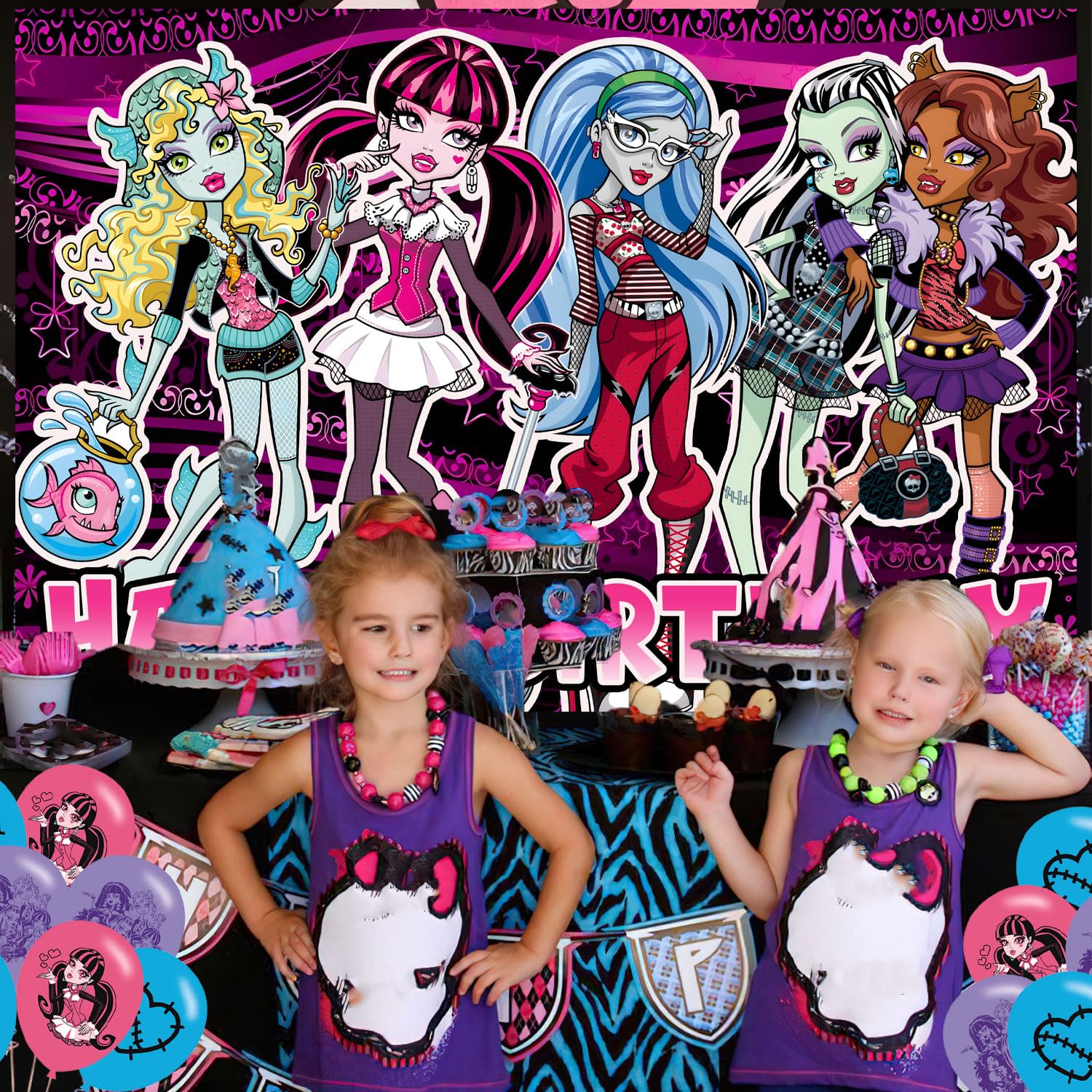Monster Girl Backdrop 5x3 Vinyl Monster Girl High Birthday Party Supplies Photography Background Picture Photoshoot Cake Table Decor Banner Shoot Drapes Poster