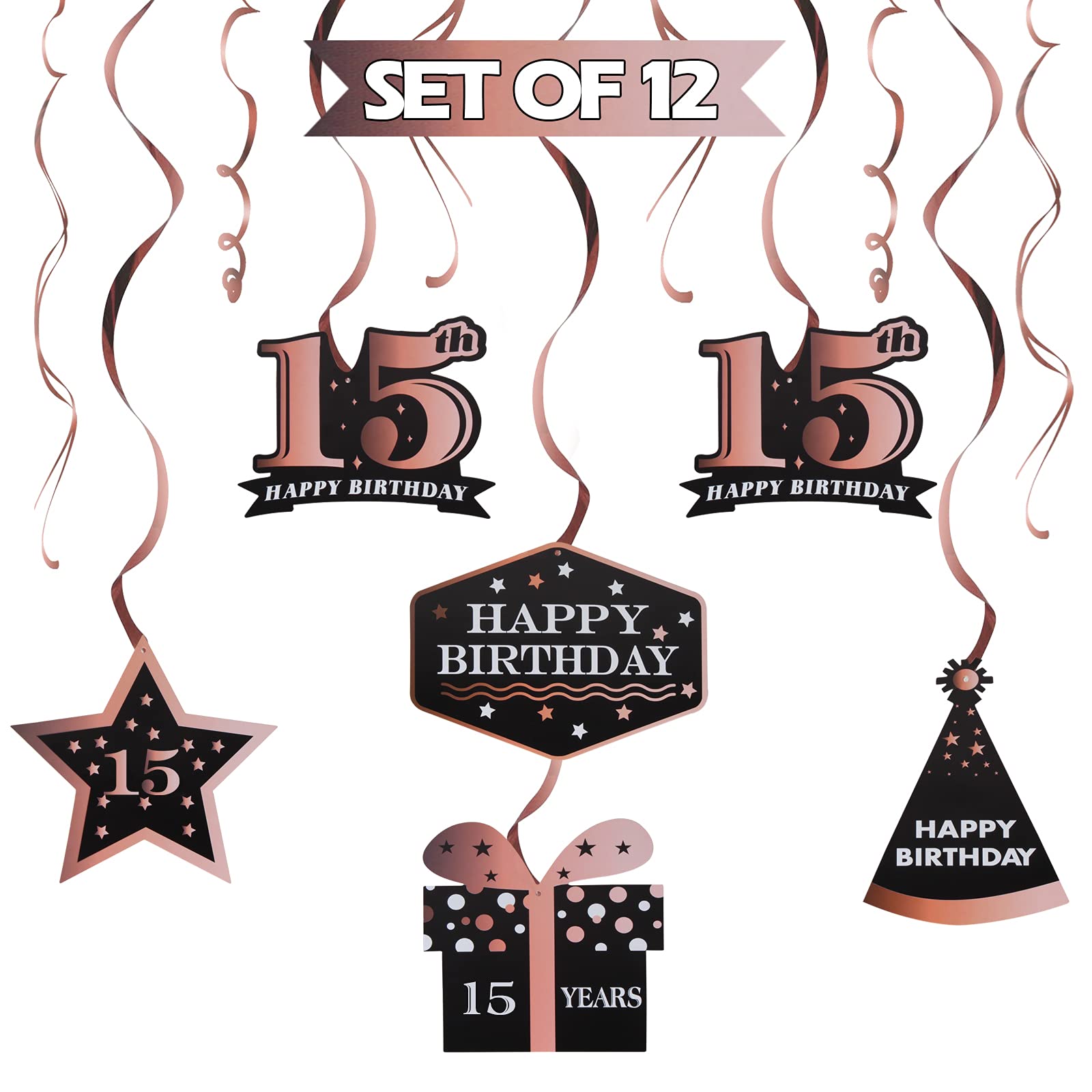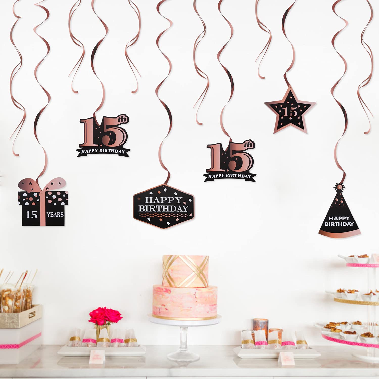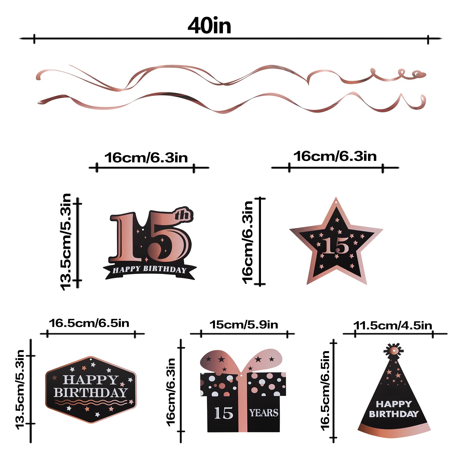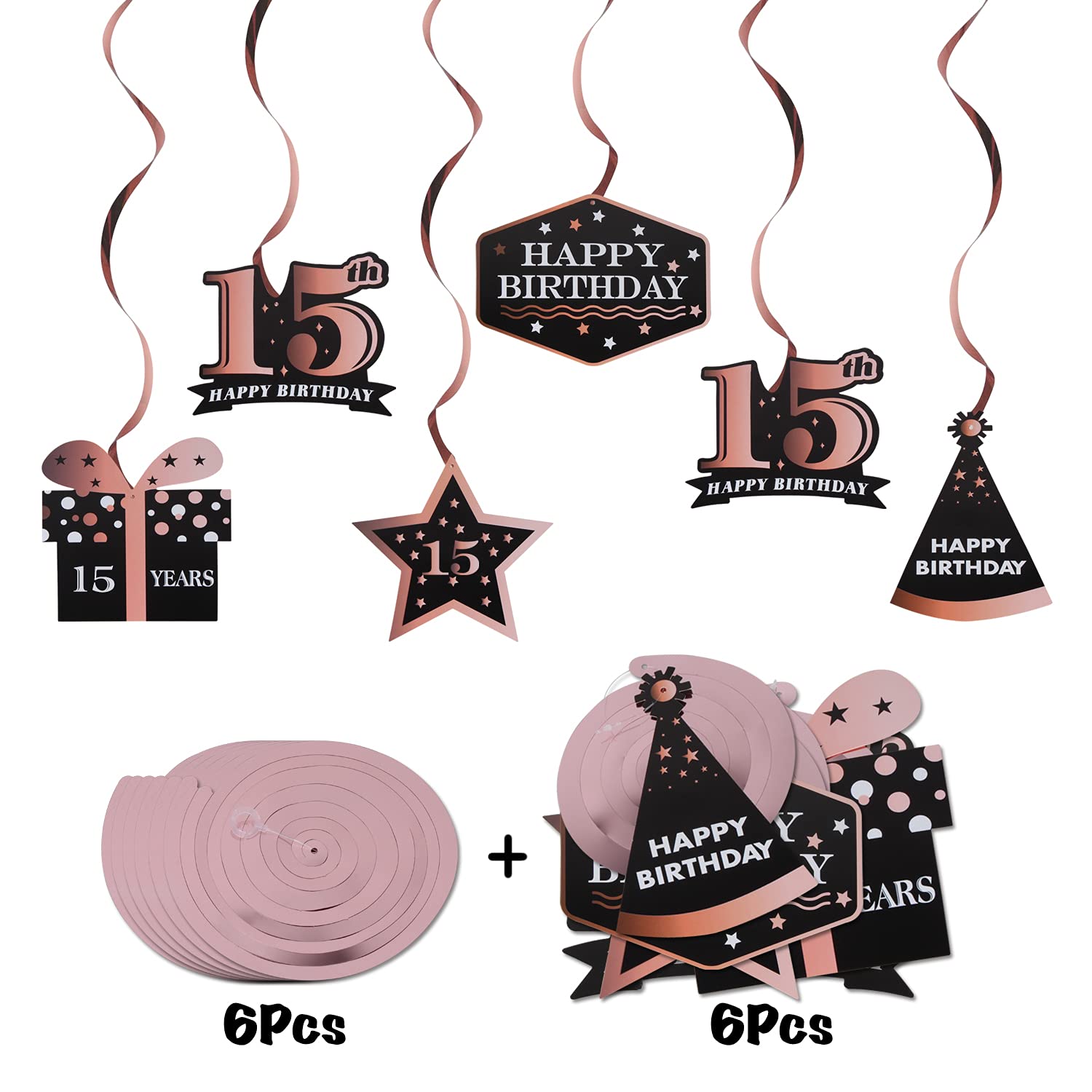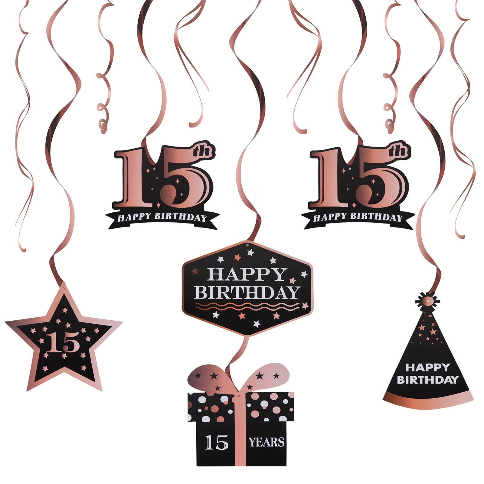 [WHAT YOU GET] Comes with 12pcs “happy 15th birthday" swirls streamers,made of rose gold paper.