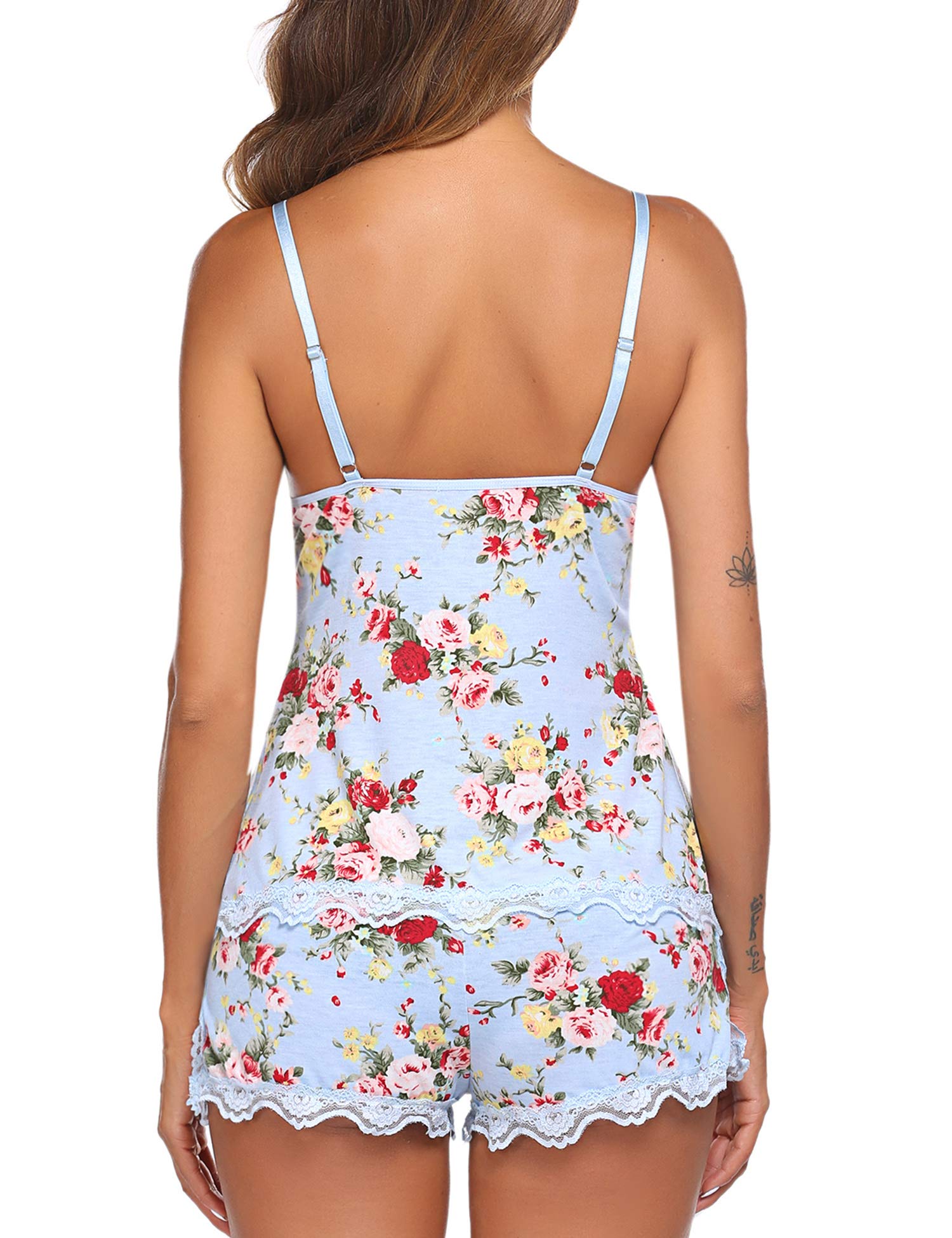 Top: Sleeveless pajama set and v neckline with sheer lace panels, adjustable strap and stretchy waistband. Classic Pajamas sets in casual style, soft and lightweight. >Bottom: Shorts with a drawstring waistband to ensure the shorts remain easy to fit, floral lace detail on cups and both sides. Casual and stylish.