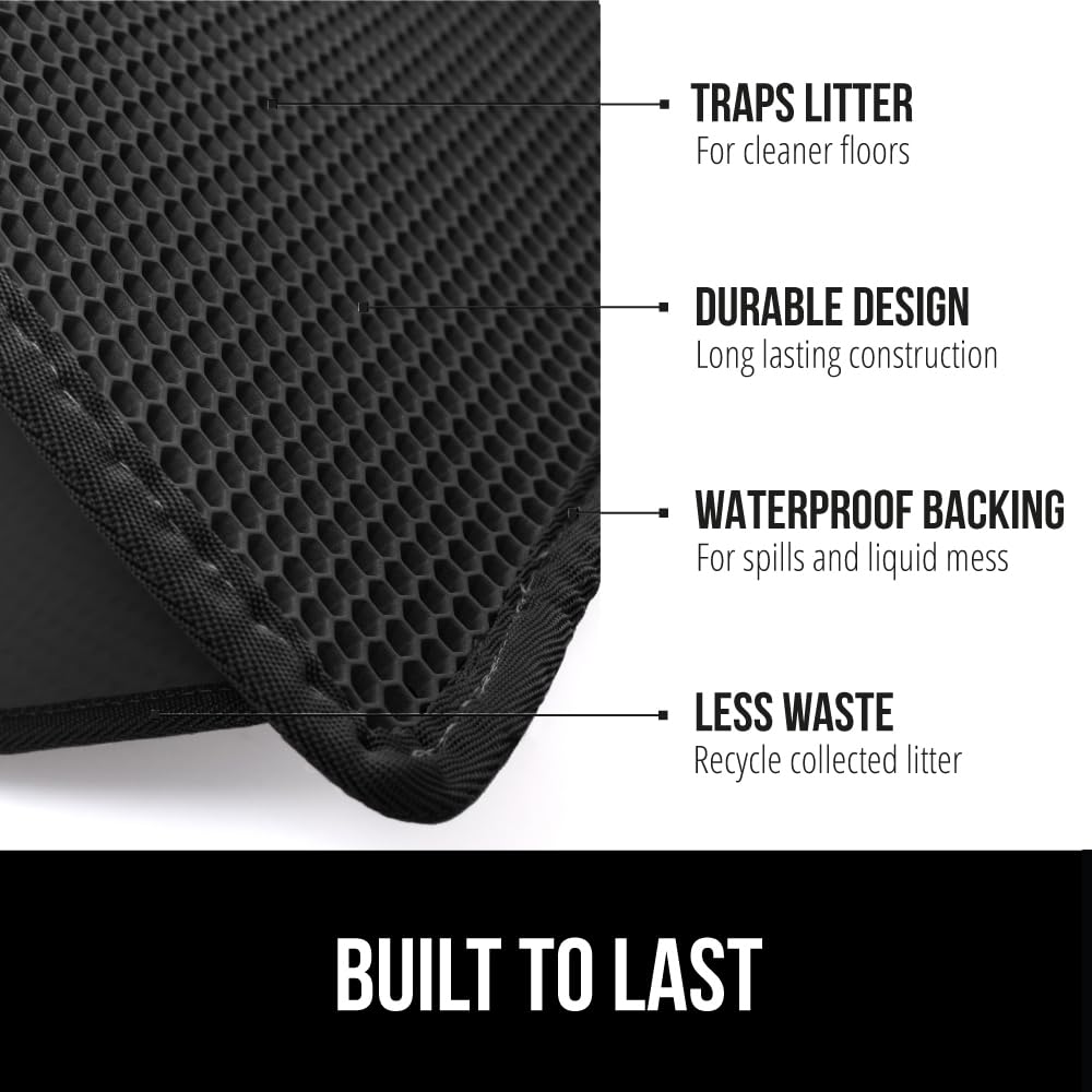 TRAPS LITTER: the Gorilla Grip mat traps even more litter as your cat exits the litter box, litter that is stuck to its paws will be captured within the large honeycomb holes on the top layer of the mat; the litter then falls through the holes to become trapped in the bottom, leak proof layer