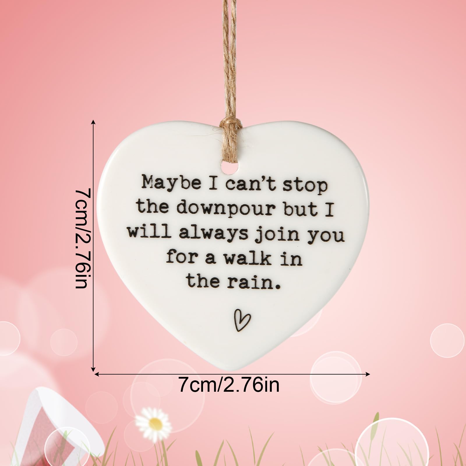 Premium Material: This hanging heart plaque is made of white ceramics, and adopted double-sided printing technology. It's reliable, long-lasting and nice. There are warm words printed on this plaque.