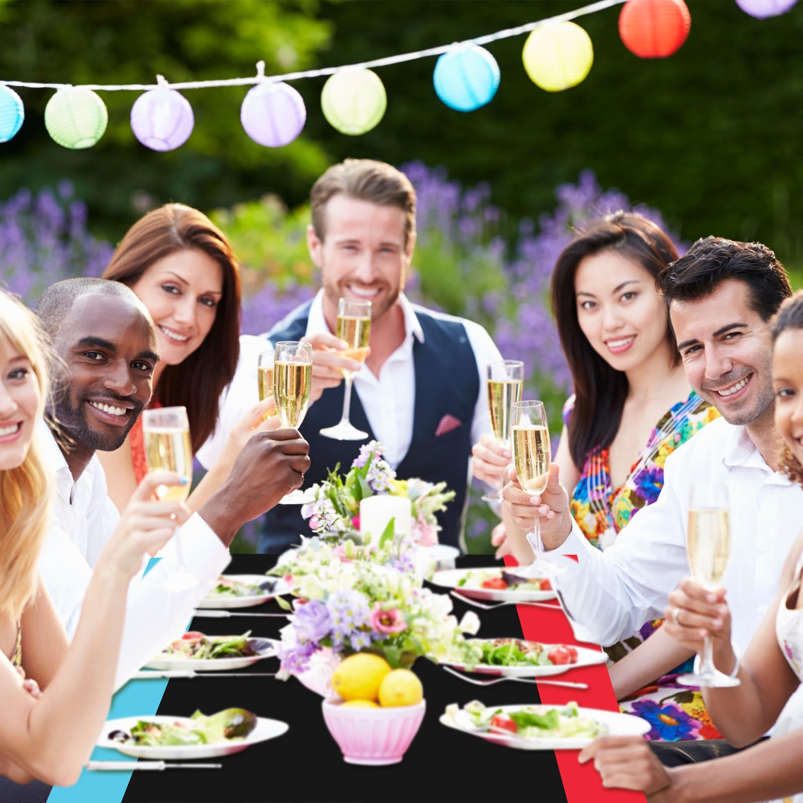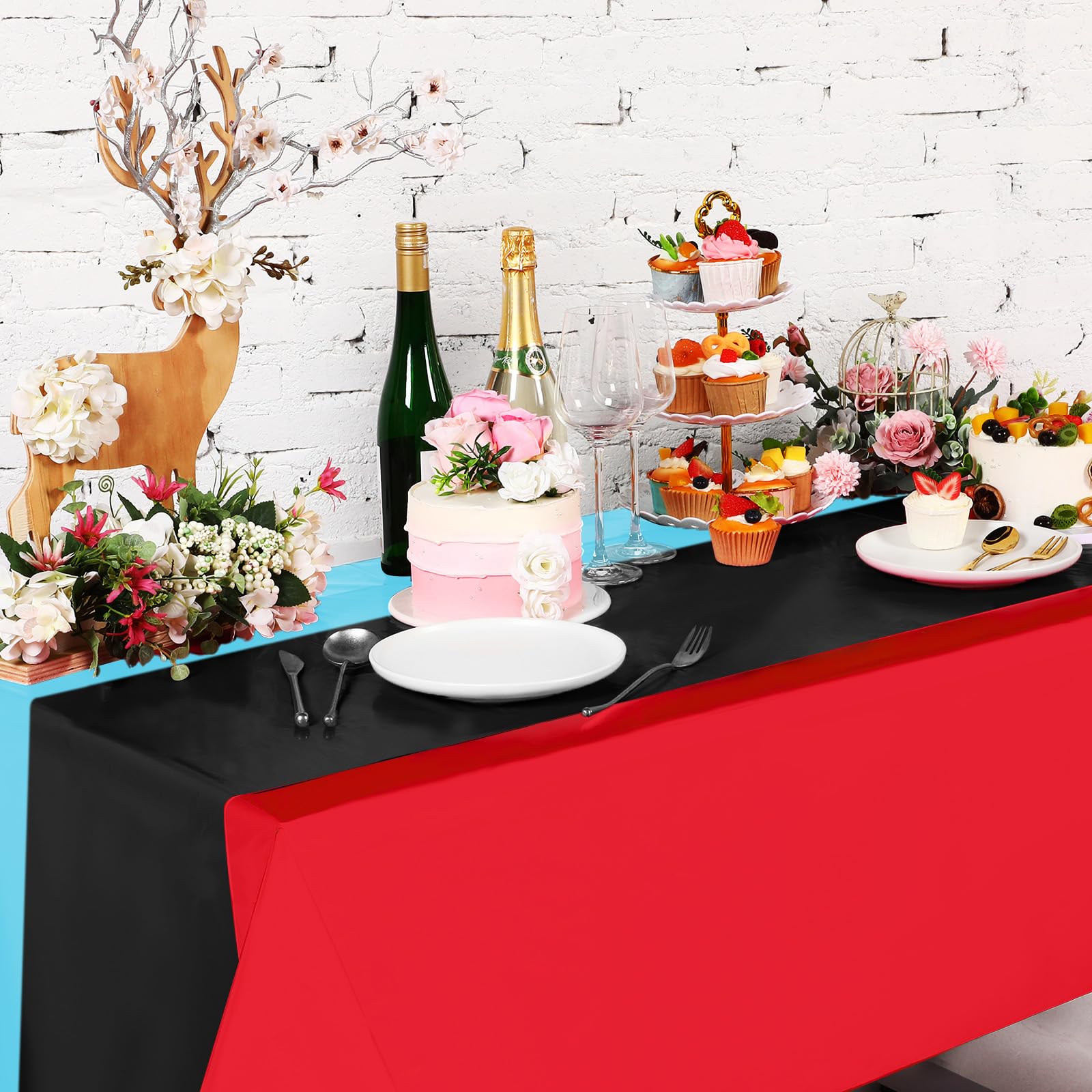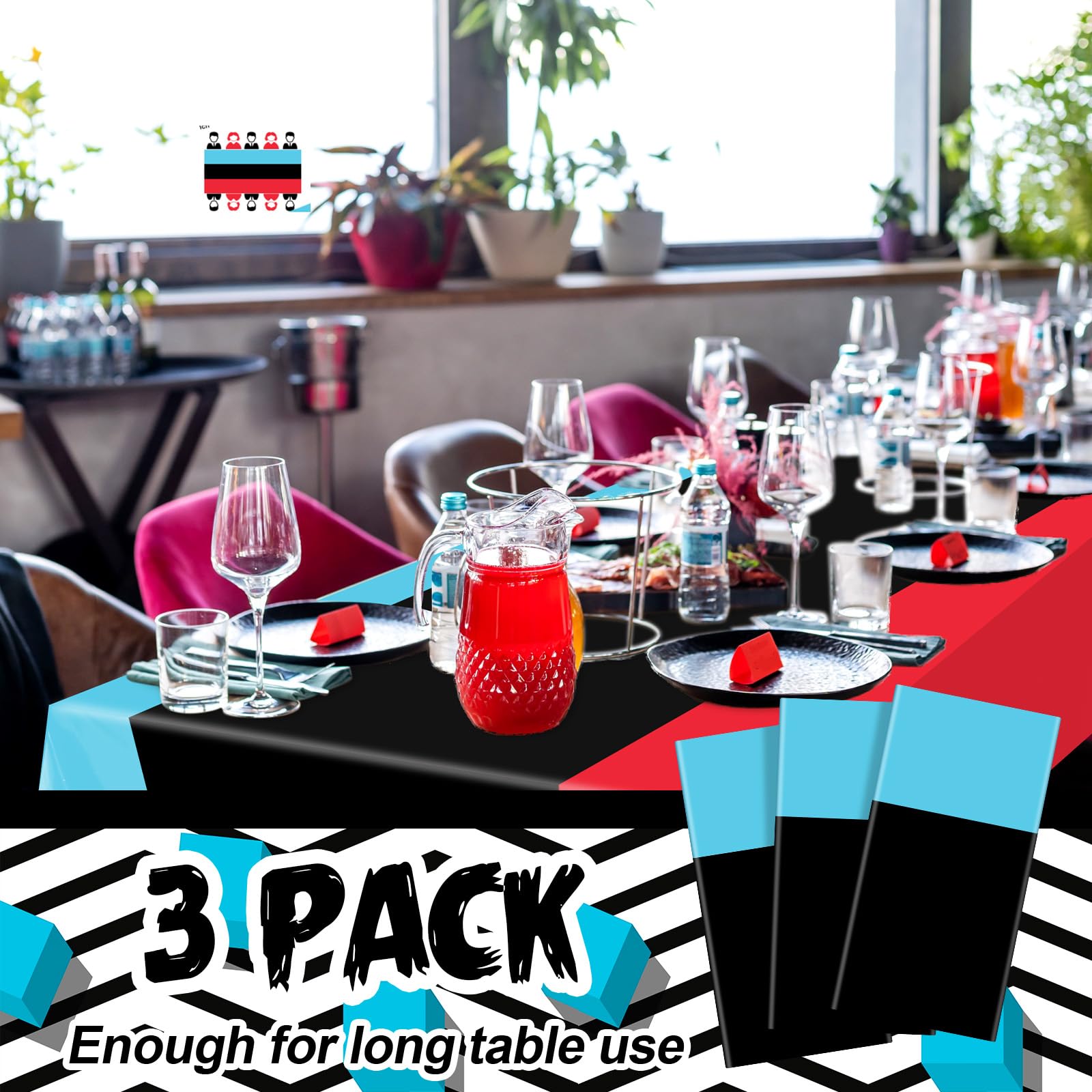 Elegant Design: the blue, black and red design of these plastic table cloth disposable adds elegance to any dining experience, you can use them directly or cut them to decorate your wedding table or desk according to your needs and preferences; Your guests will be impressed with the sophisticated atmosphere they create