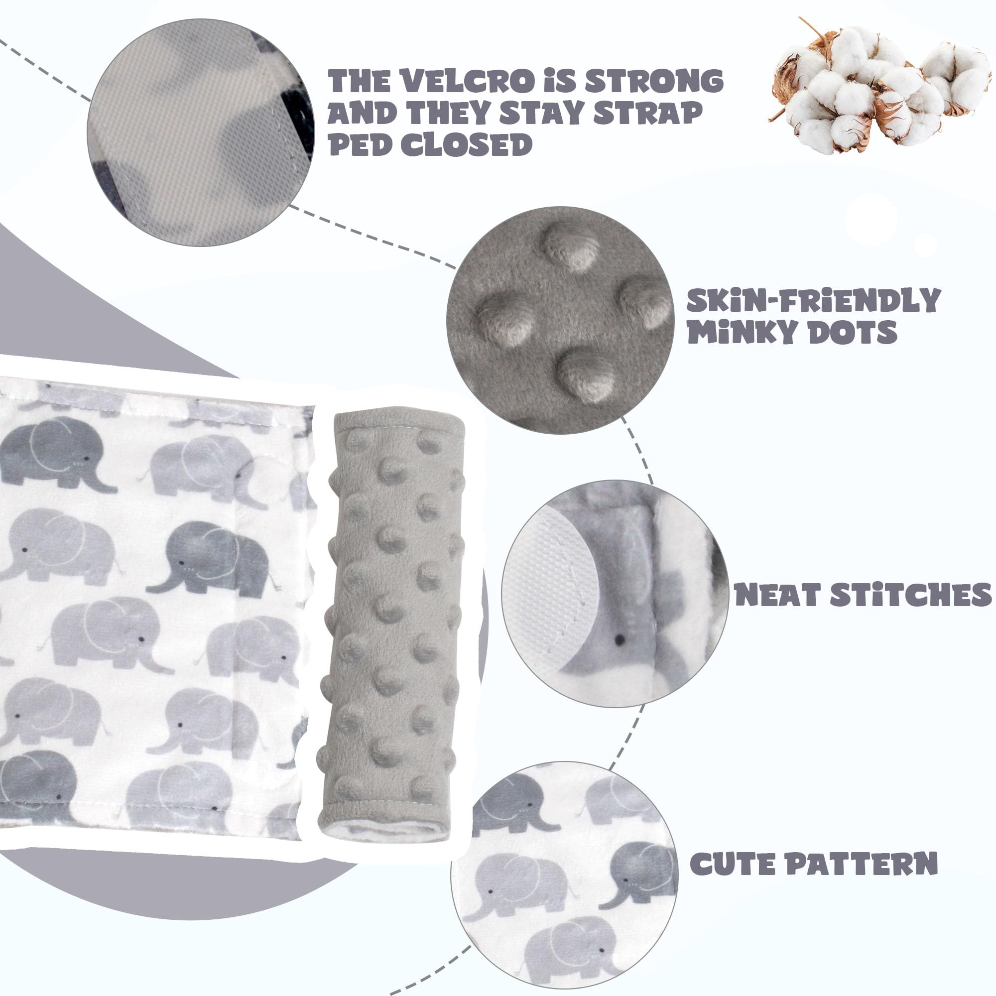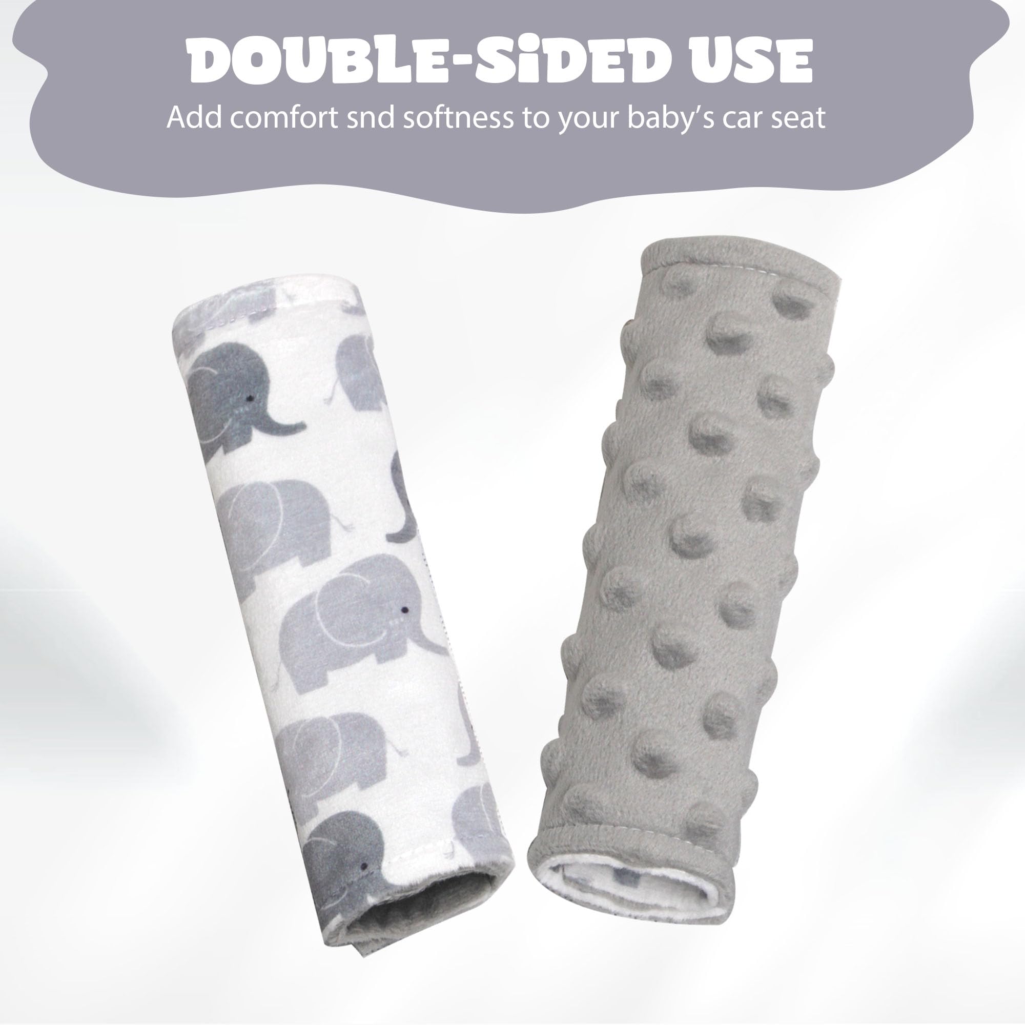 Soft and Cushiony: - Super soft on both sides of the car seat strap covers. Soft, pretty velvet on one side and minky dots on the other side! Added comfort snd softness to the car seat. No more red cut marks from seat belts!