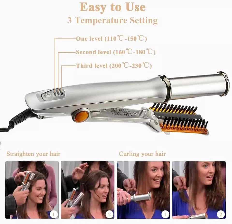 Tame the thickest hair. The thinnest curled and scattered hair. Straighten the thickest and most curly hair! Use a low frying or frying heat for all. The secret of the shaper lies in its rotating polishing drum and four rows of precisely arranged bristles. The gentle heat and rotating drum individually polish each hair strand, bringing you incredible shine and style!
