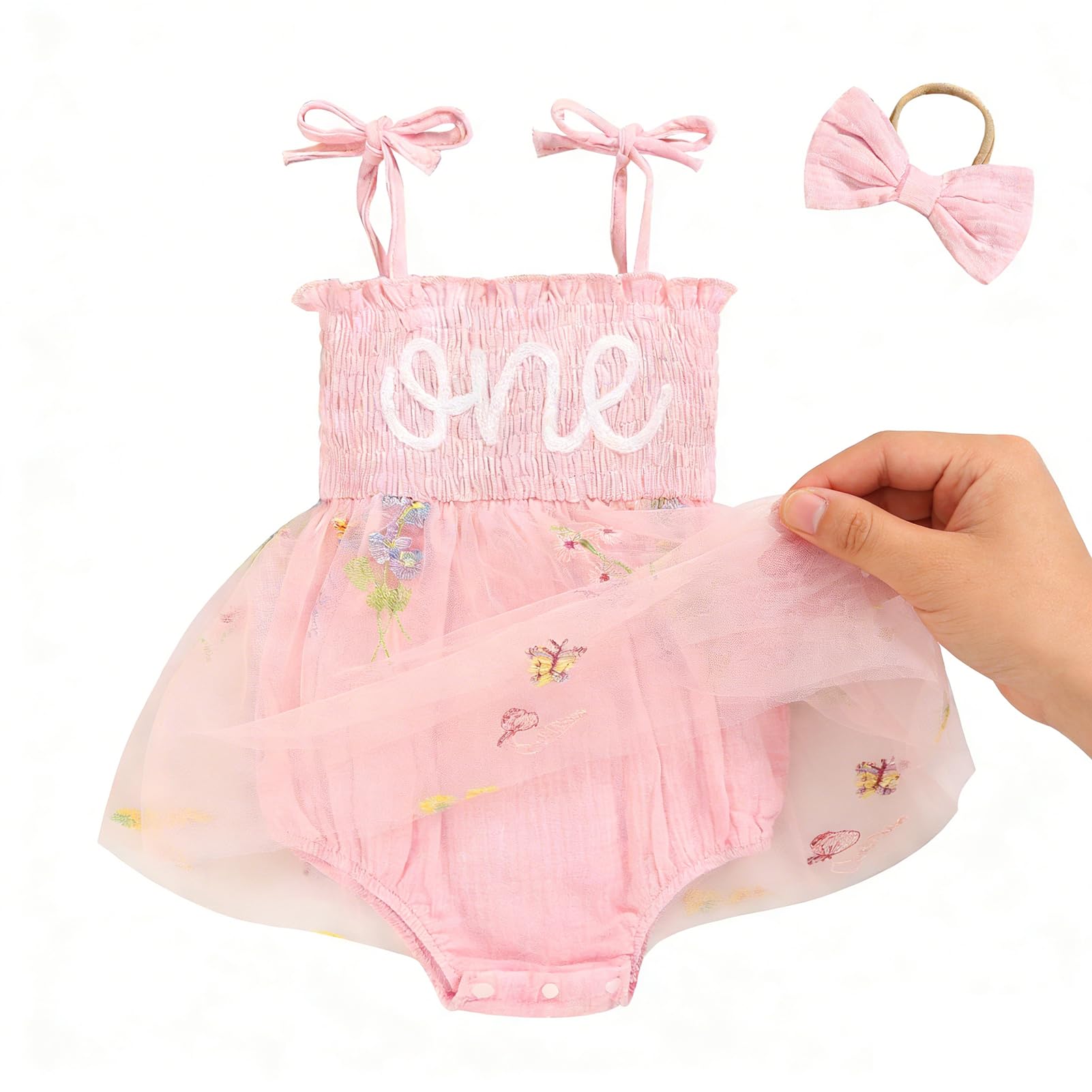 Design: Newborn baby girl playwear romper dress with sleeveless, solid color, multi-layered tulle, Snap leg openings for easy diaper changes, easier morning for novice mother.Cute princess 1st birthday outfit, fashionable and adorable embroidery ONE printed themed birthday clothes perfect for creating beautiful memory of her first birthday.