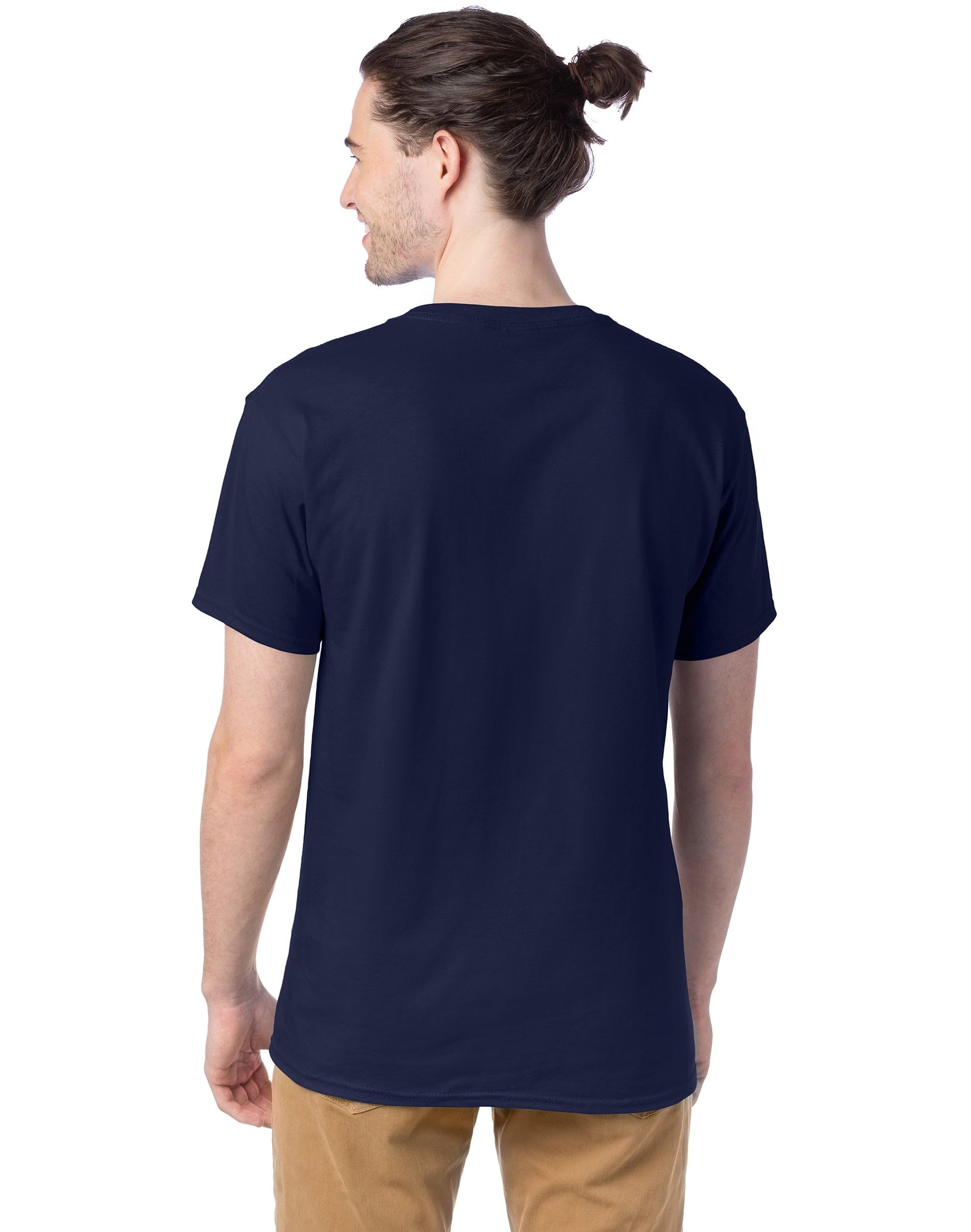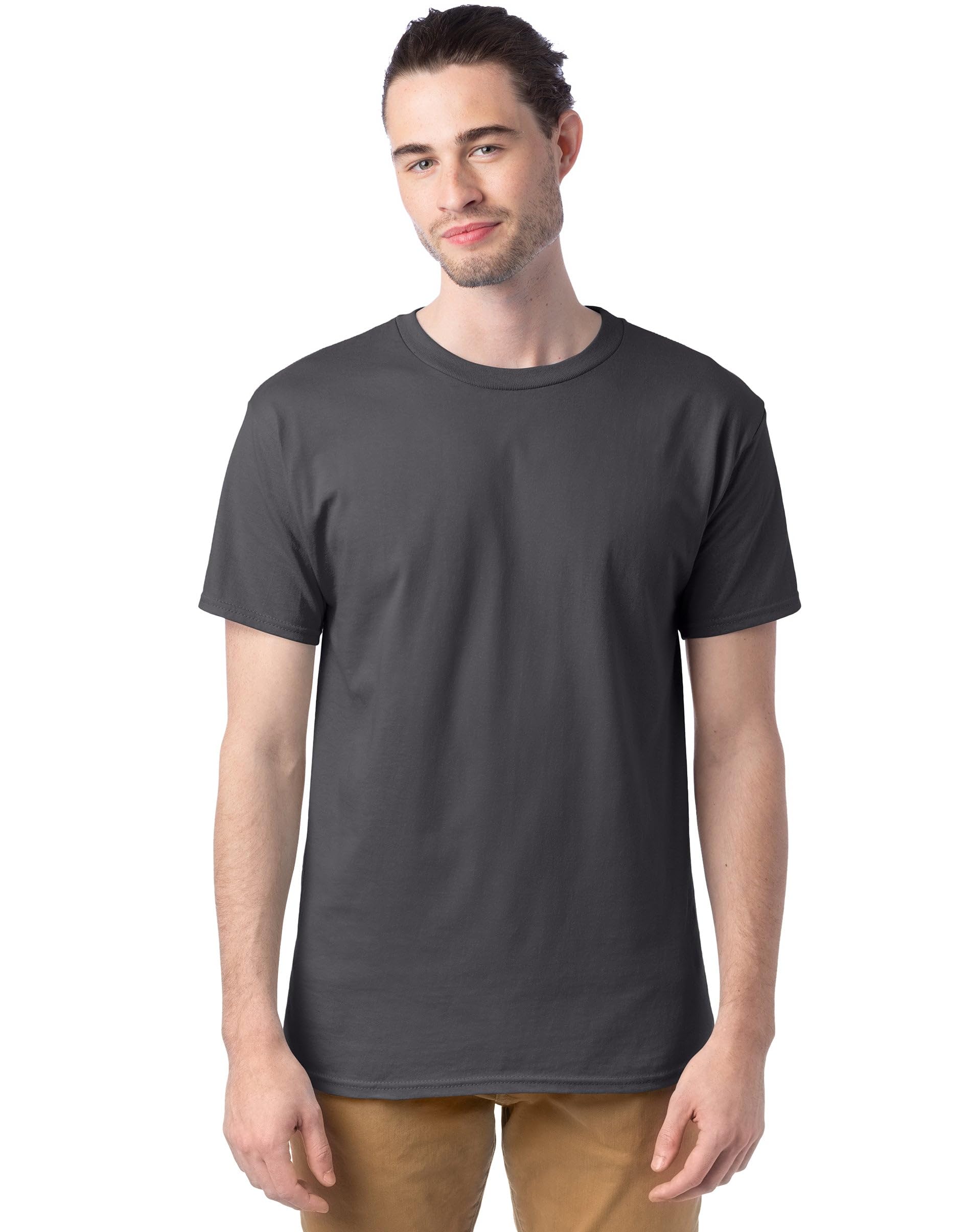 Description Crafted for quality and designed for comfort, our short sleeve tees for men boast a timeless crewneck design that never goes out of style. Wear as a bottom layer or as your only layer – this wardrobe essential is just that versatile. Made from 100% cotton, this classic men’s t-shirt features sturdy details like double-needle stitching and shoulder-to-shoulder taping. Know what’s even better? This go-to men's tee is available in a handy 4 or 6-pack, so you never run out. Hanes Essentials: You can't go wrong with our cotton classics.