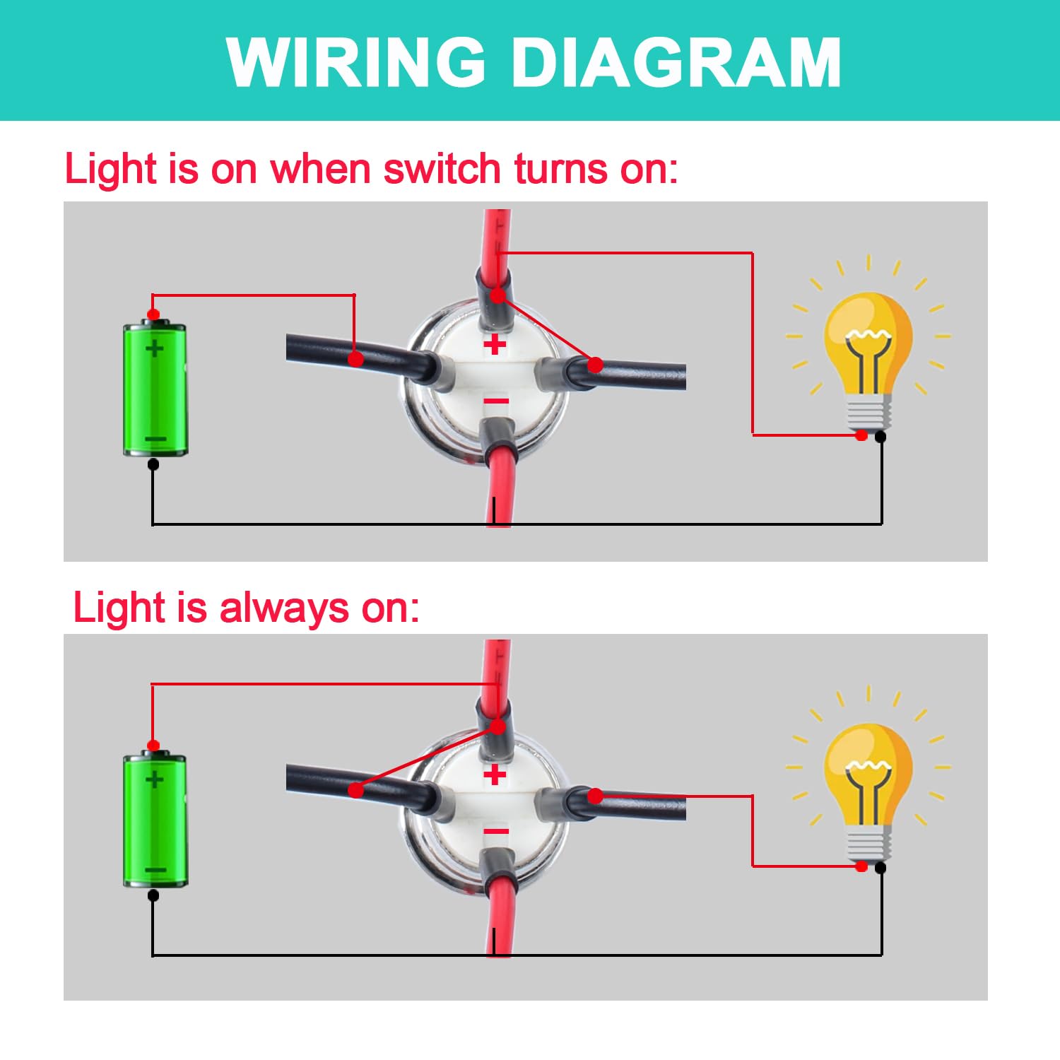 2 wiring methods: LED light can be always on, or illuminates when the device is working; each switch is equipped with s pre-wired socket for easy connecting