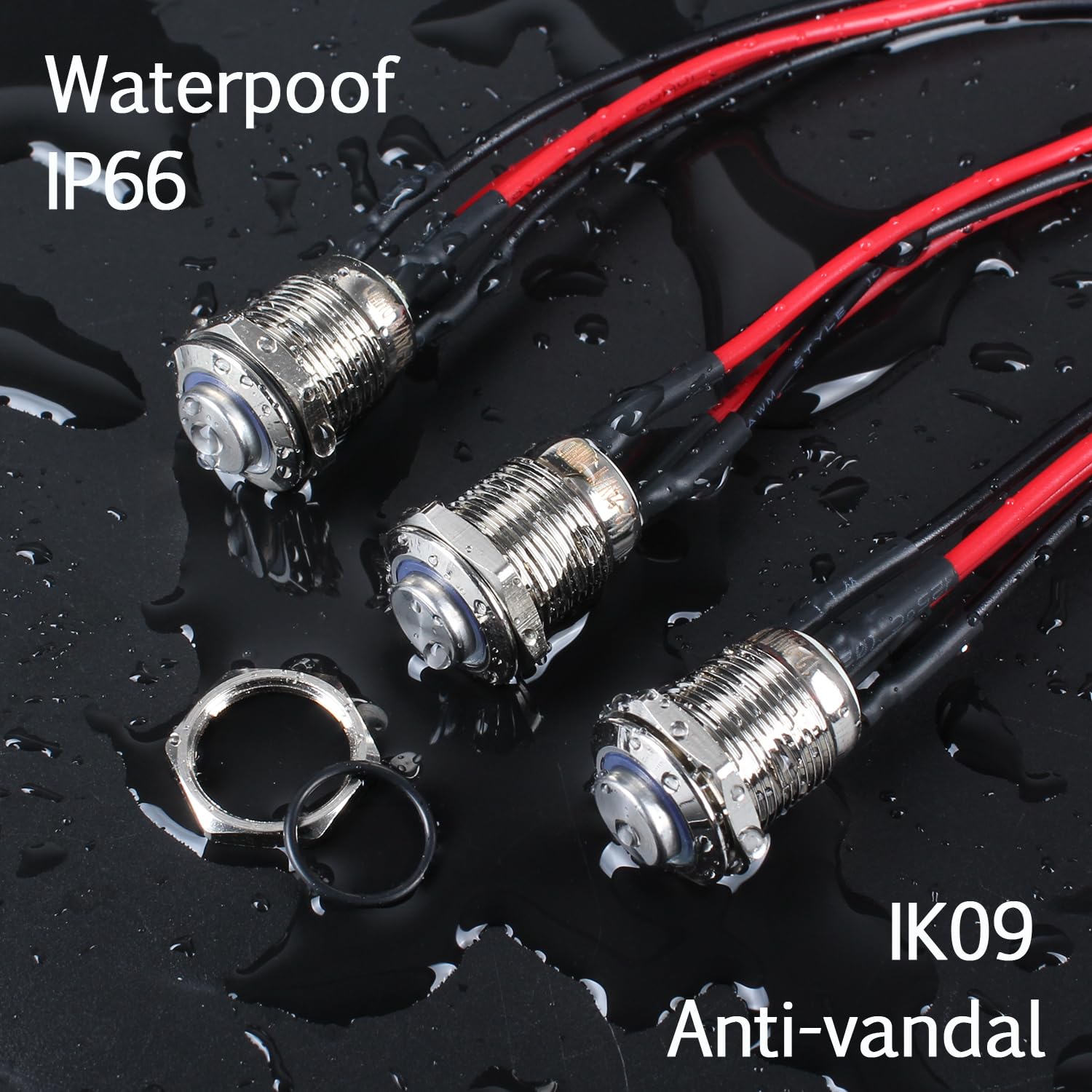 Protection Degree: IP66 Waterproof and dustproof; IK09 Anti-vandal rate. It can be used in wet or dusty environment; But Don’t immerse the button switch in water