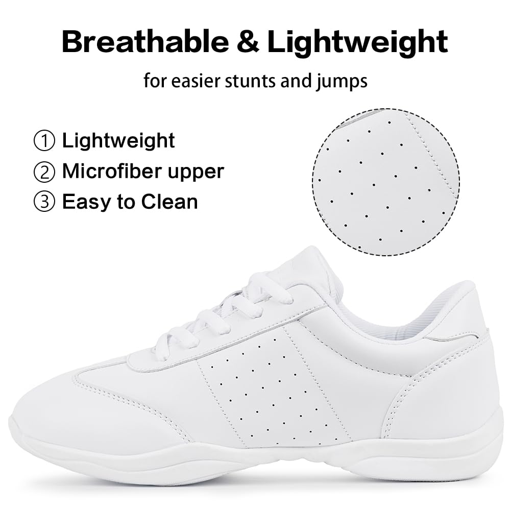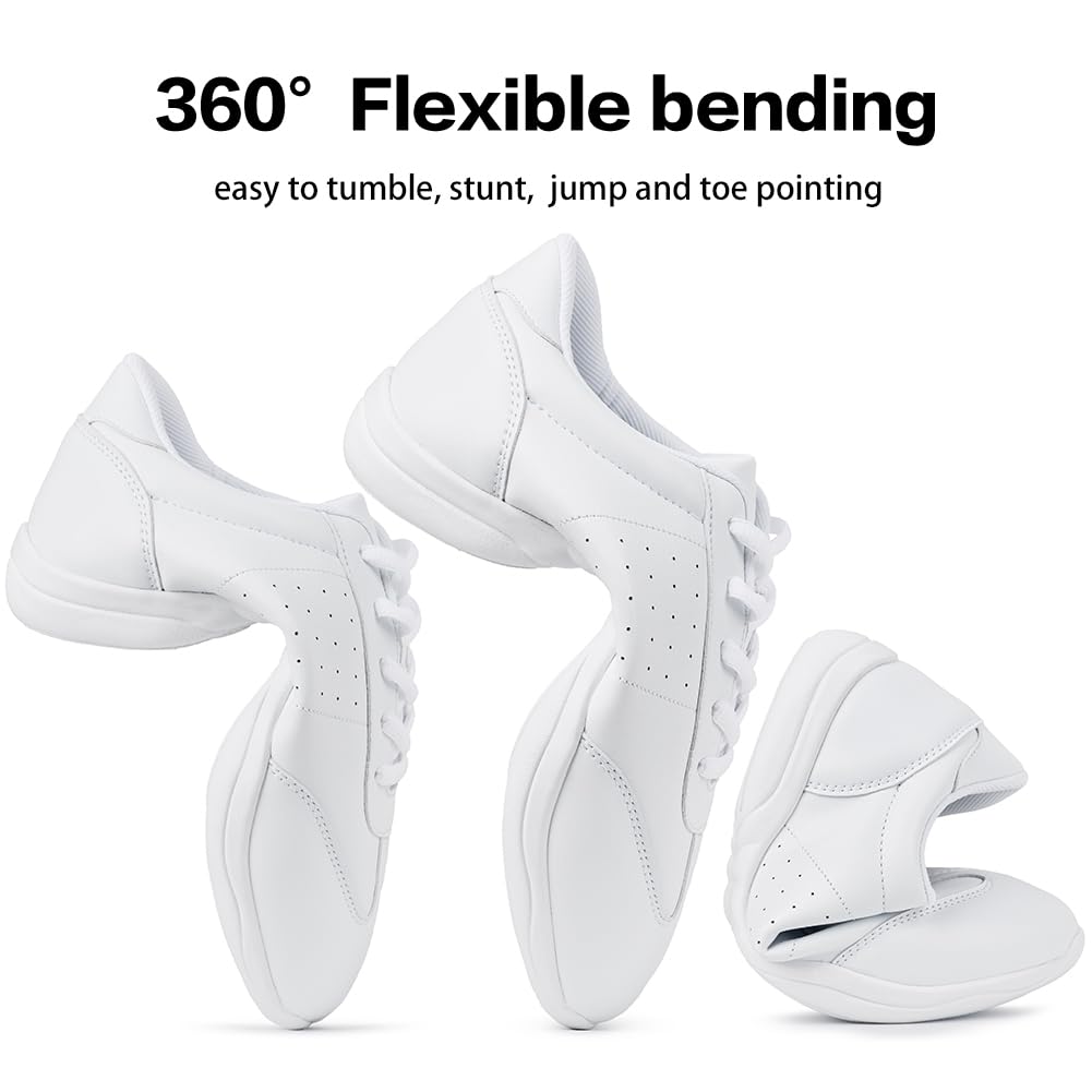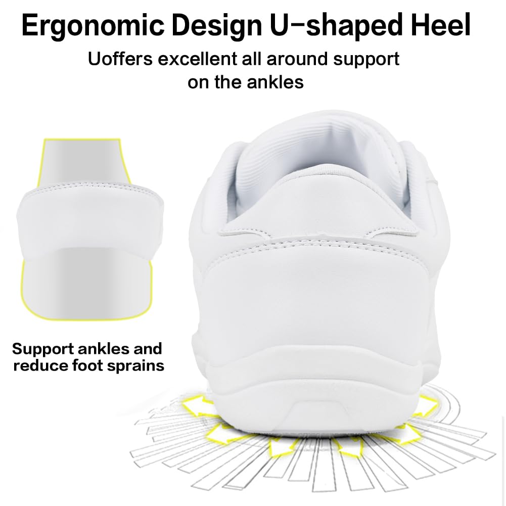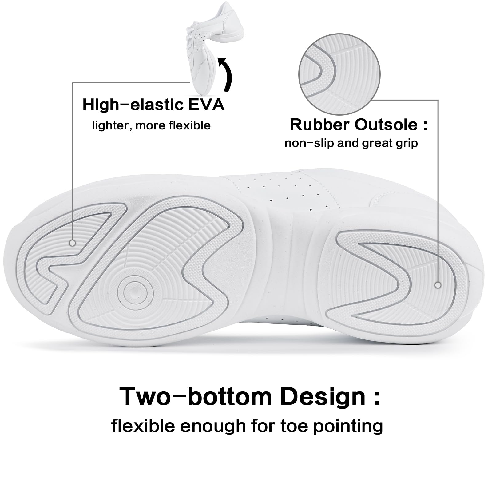 Durable White Cheer Shoes: Utilize a synthetic leather upper for durable and intensity. And our cheer shoes are durable enough to accompany you through your daily training and competition