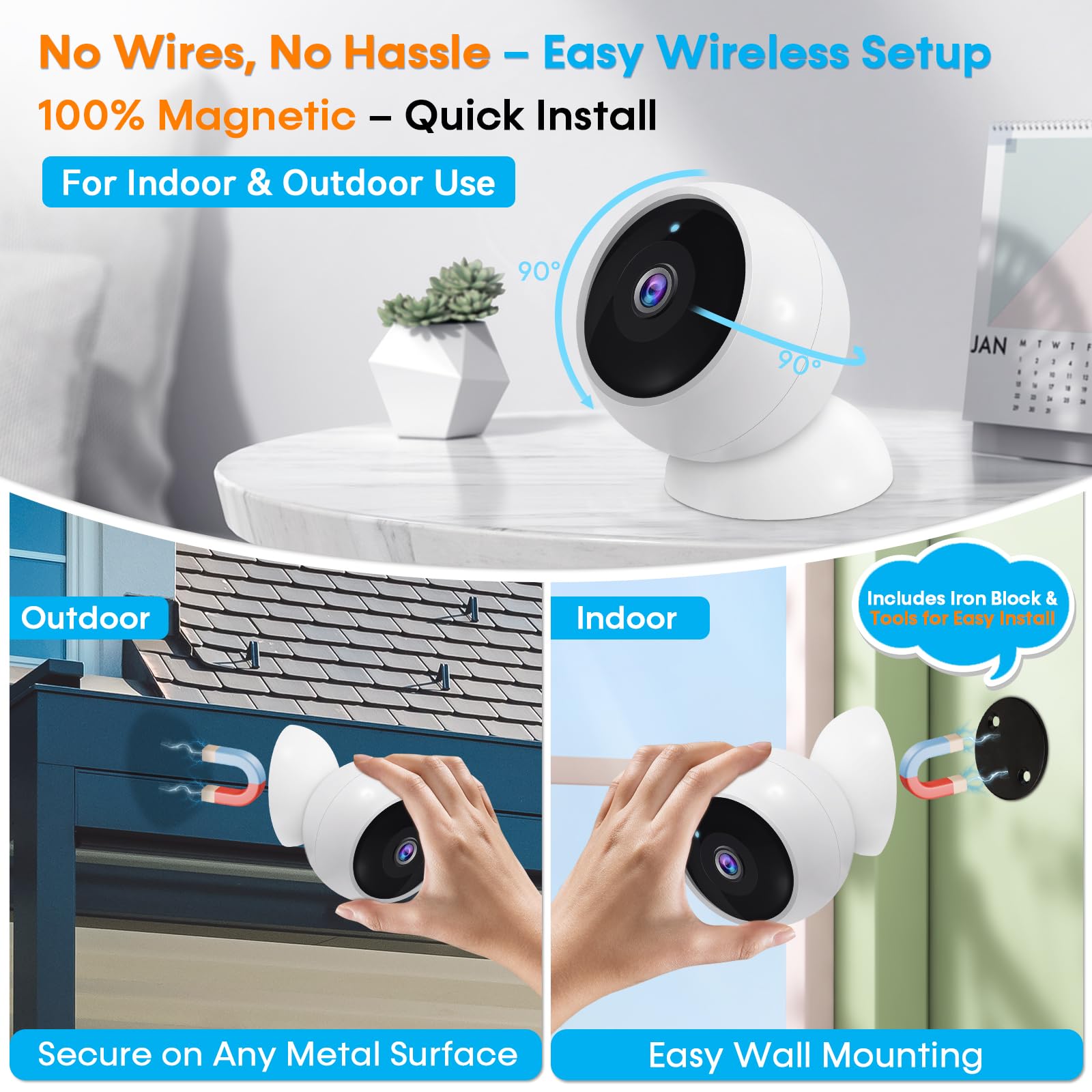 2K HD Quality for Ultra-Clear Surveillance – Enjoy crystal-clear video with 2K HD resolution, ensuring every detail is visible day or night. Ideal for both indoor and outdoor use, this wireless cameras for home security with exceptional night vision for clear, reliable footage in low-light conditions