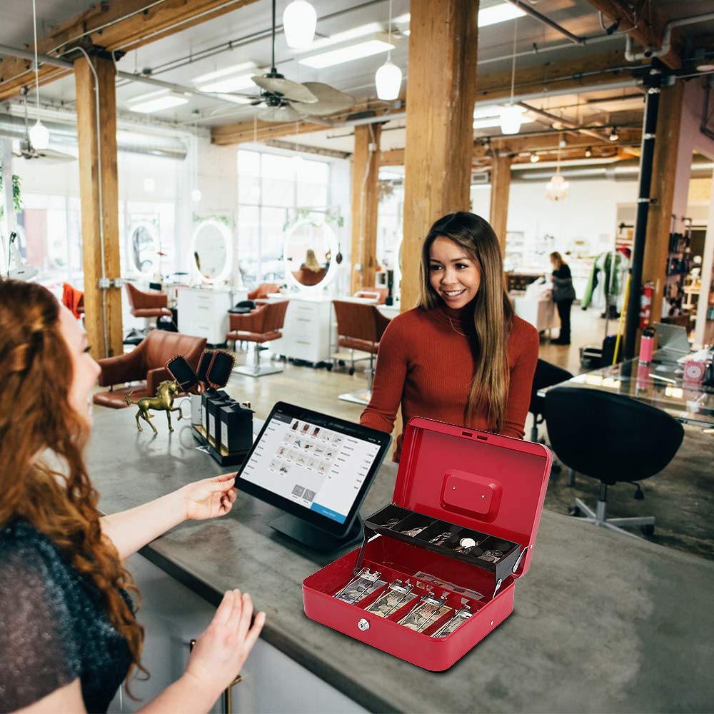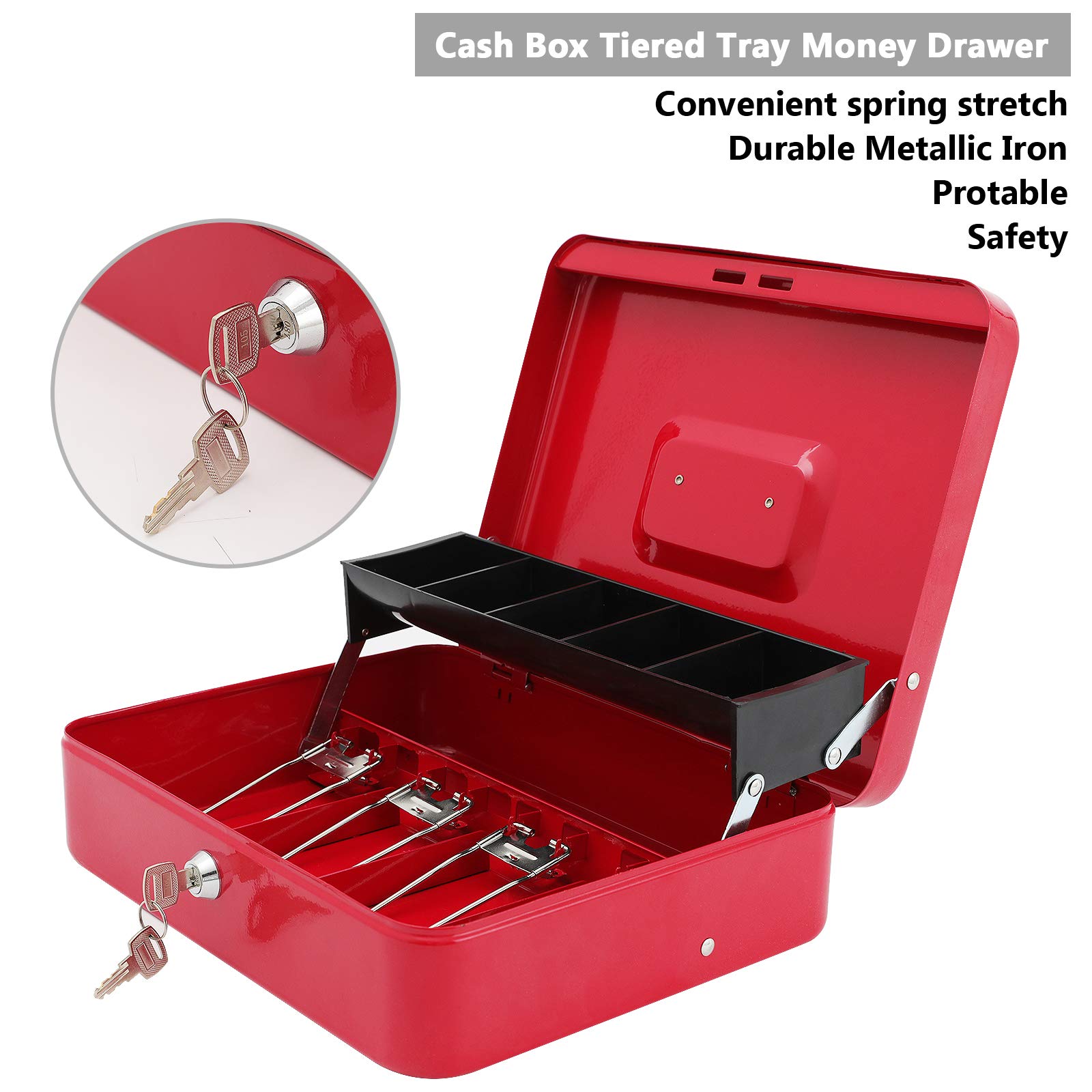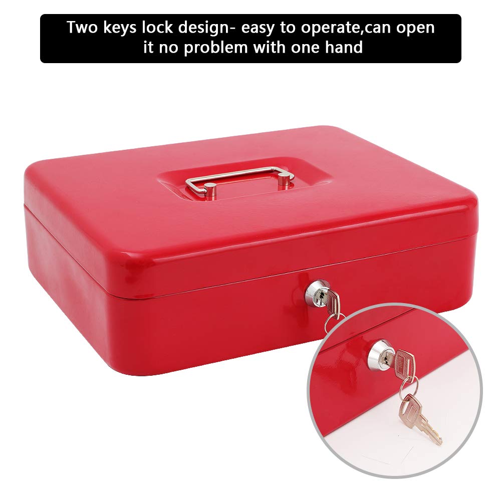 【DURABLE CONSTRUCTION】xydled cash box with key lock has a durable steel construction with rounded corners. At the same time, the lock box is lightweight with a sturdy and convenient handle, so you can take it to anywhere and hide it easily.