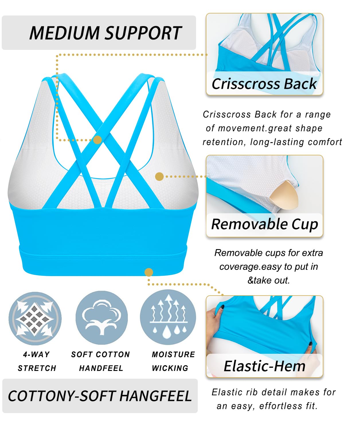 CRISS-CROSS BACK FULL COVERAGE DESIGN:Sexy back bringing more attention to the crisscross double strap back feature.Elastic Double Strap Bra features a sultry full coverage and double layer fabric for enough added support.Stretch Fit Sports Yoga Gym Bra Push up & Padded with removable pads for convenient adjustment, with a cotton-like meterial, soft and comfortable to wear.