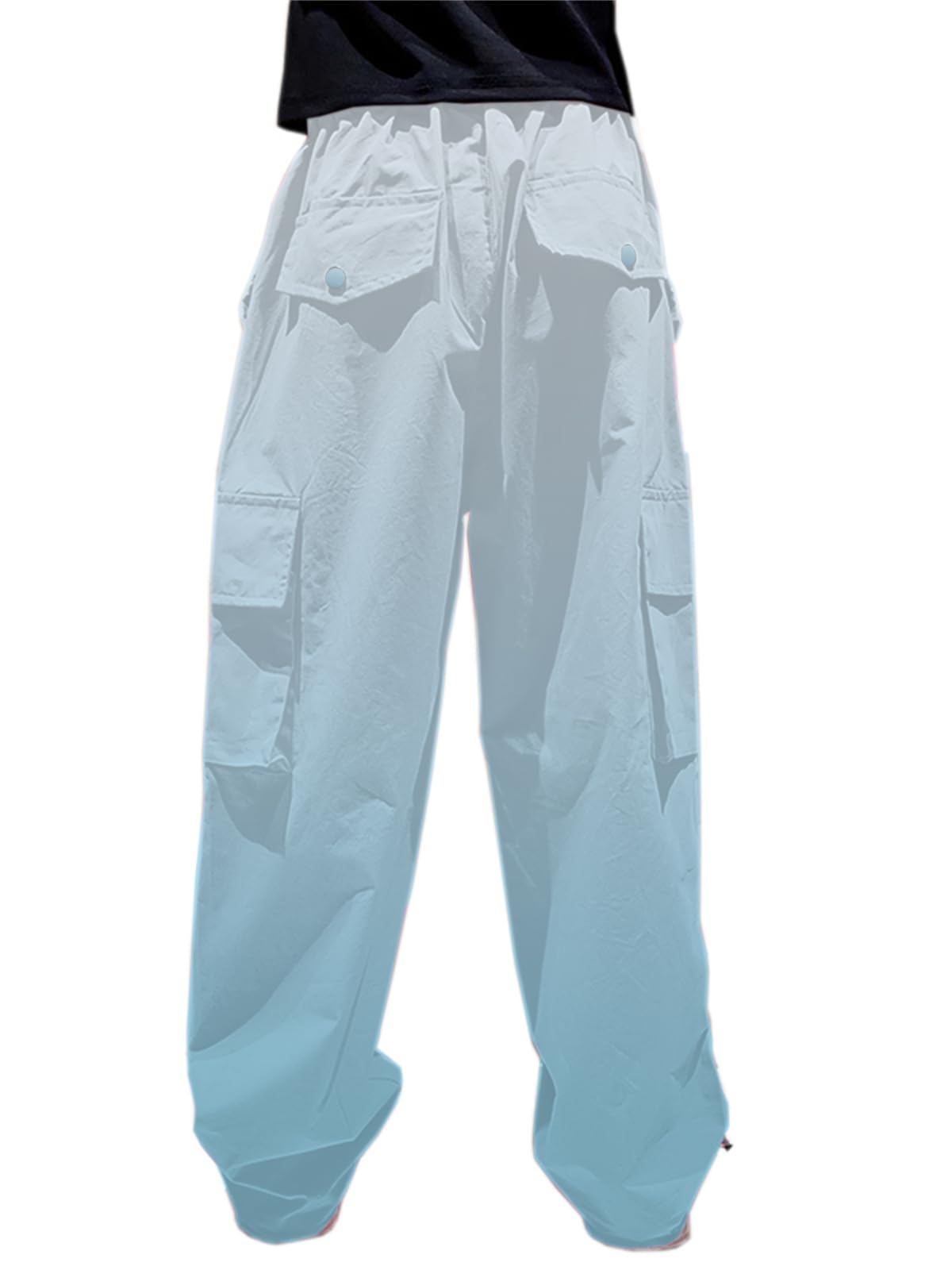 Design:Y2K cargo pants featuring a baggy oversized silhouette with color-matched elastic drawstring waist, adjustable ankle drawstring cuffs, ankle-length cut, and 4 functional cargo pockets for essentials storage.