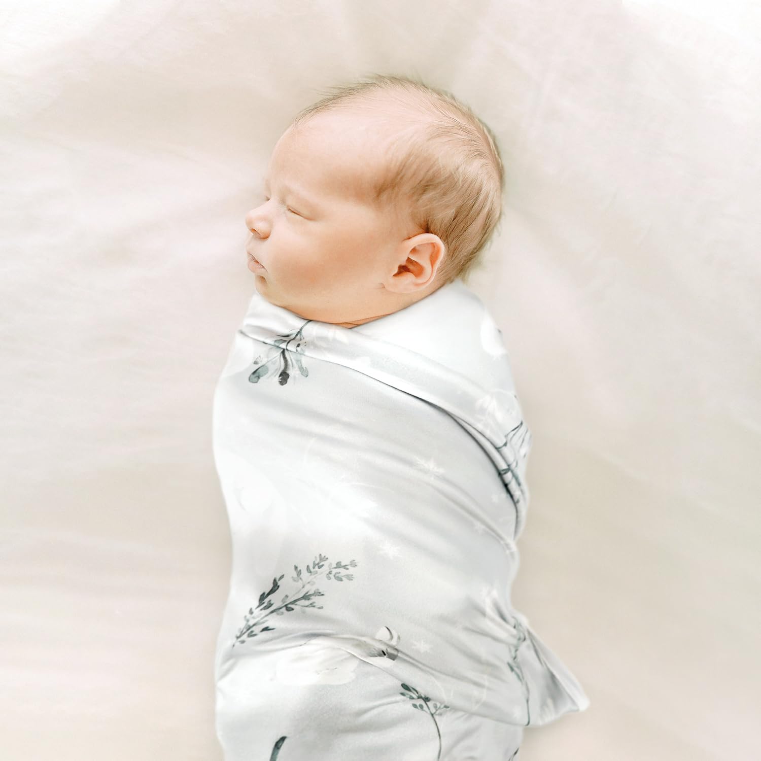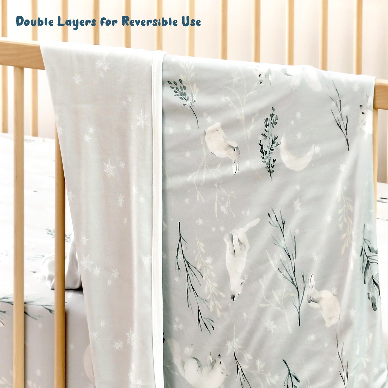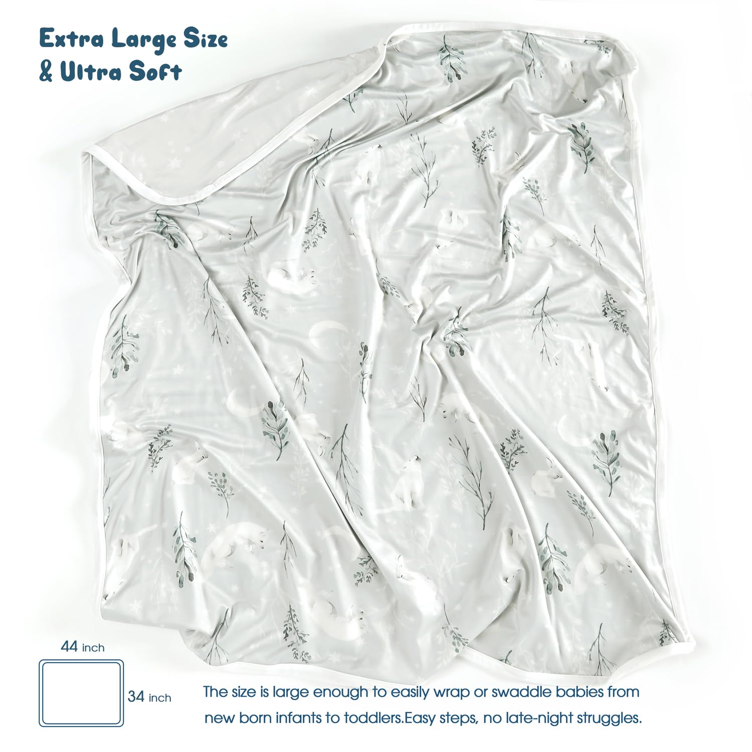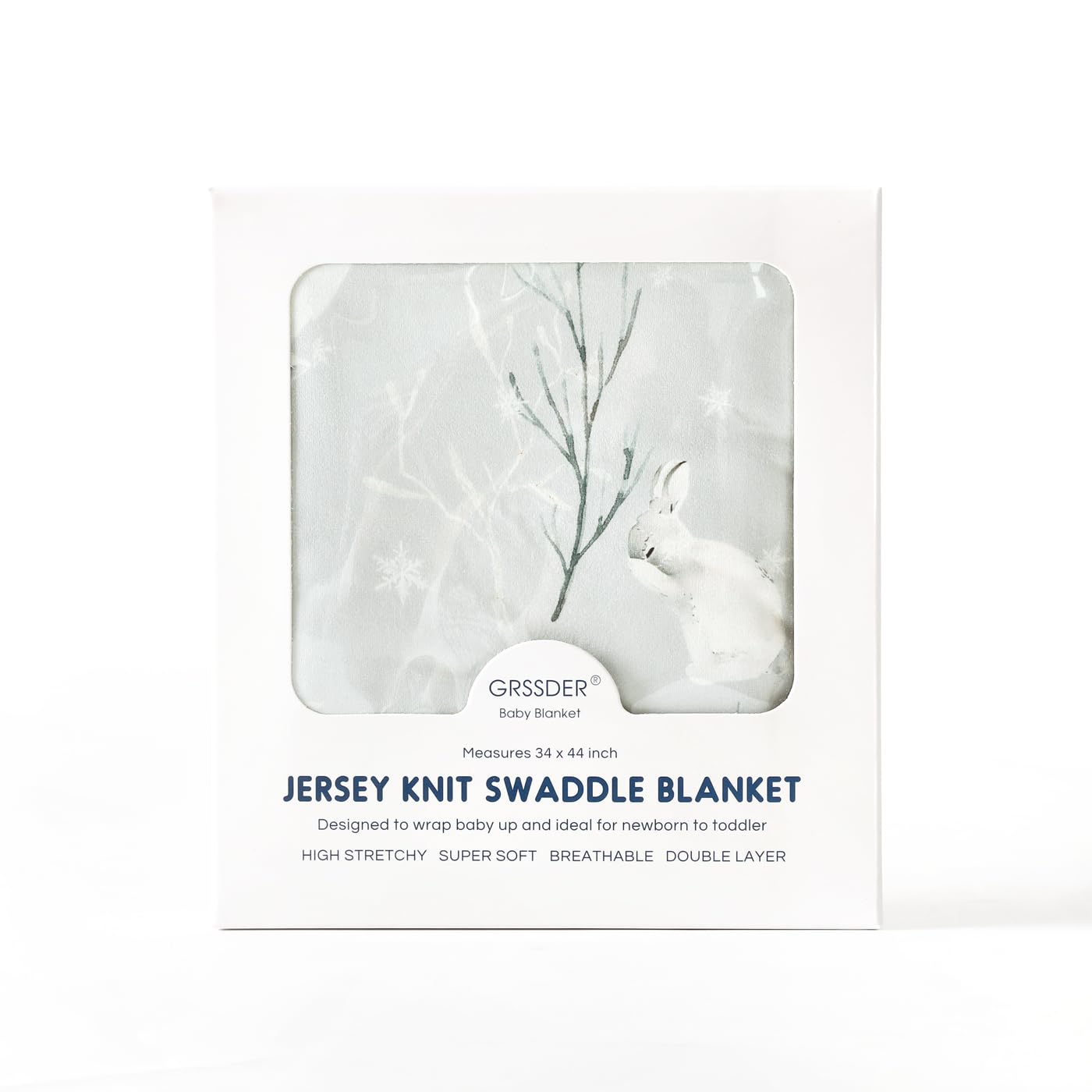 GRSSDER Baby Blankets Super Soft Stretchy Jersey Knit Swaddle Blanket for Girls and Boys, Double Layer Reversible Receiving Blankets 34 x 44, Extra Large for Swaddling, Snow Wolf