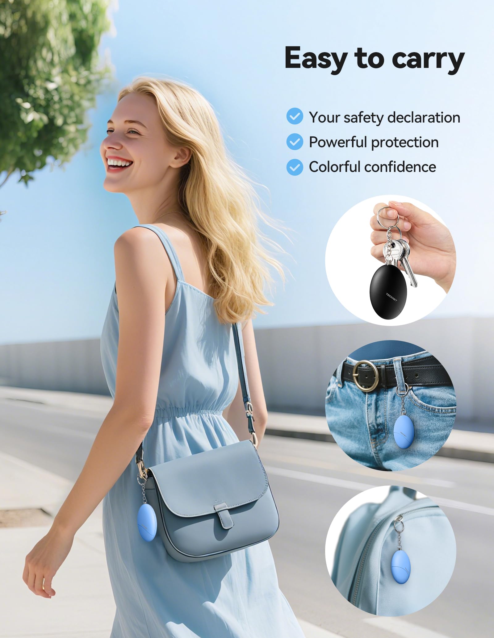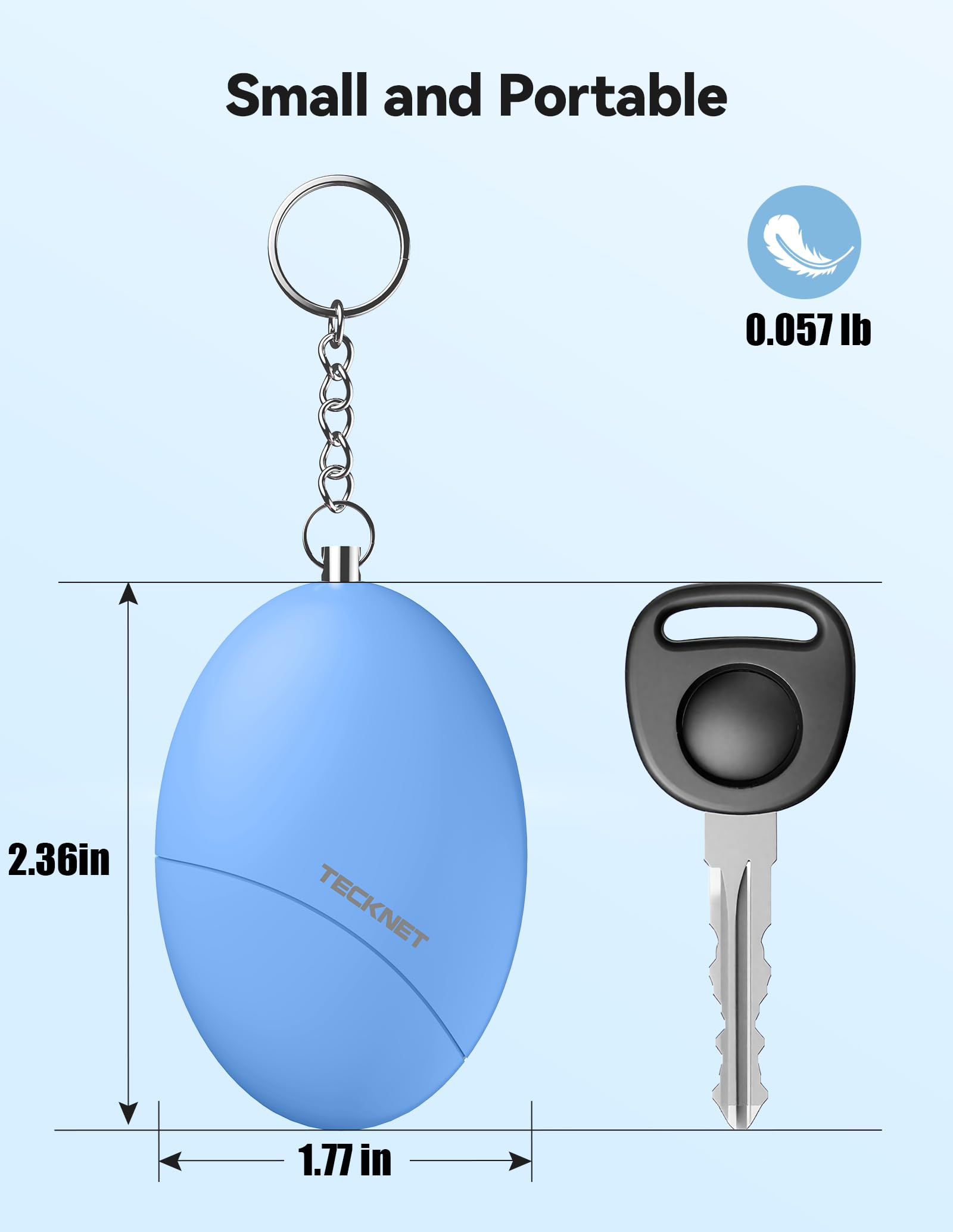 Portable Design: This blue & black 2-pack security alarm keychain weighs only 0.057 pounds per piece, lightweight and portable, and can be easily hung on keys, backpack, purse or belt. Perfect for students, women, elderlys and travelers - Meets TSA security standards for easy access.