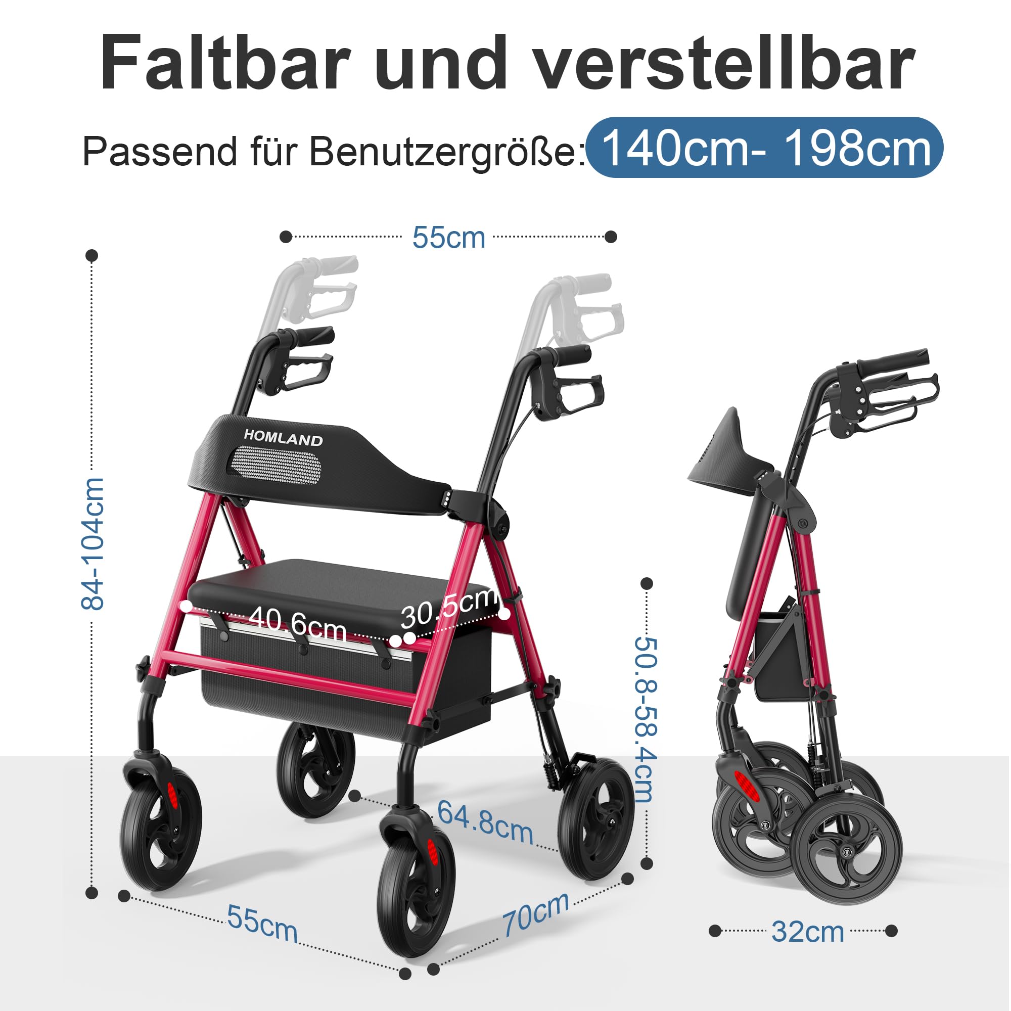FOLDABLE & CONVENIENT: At just 20.4 pounds, this 4 wheel walker combines strength with portability. Its quick-fold design allows for easy transport and storage, fitting perfectly into your lifestyle.