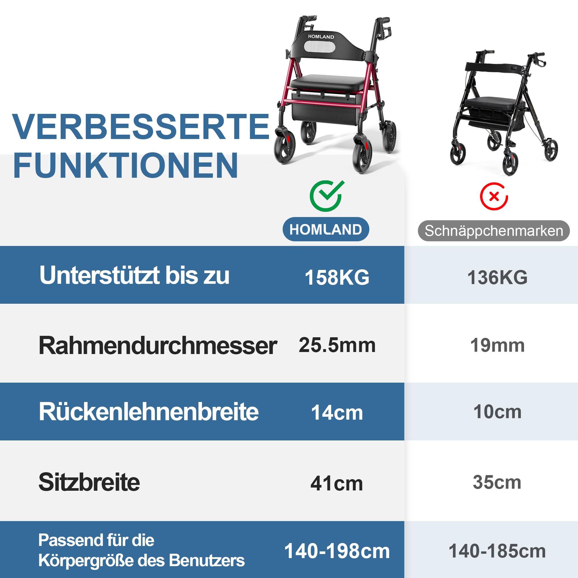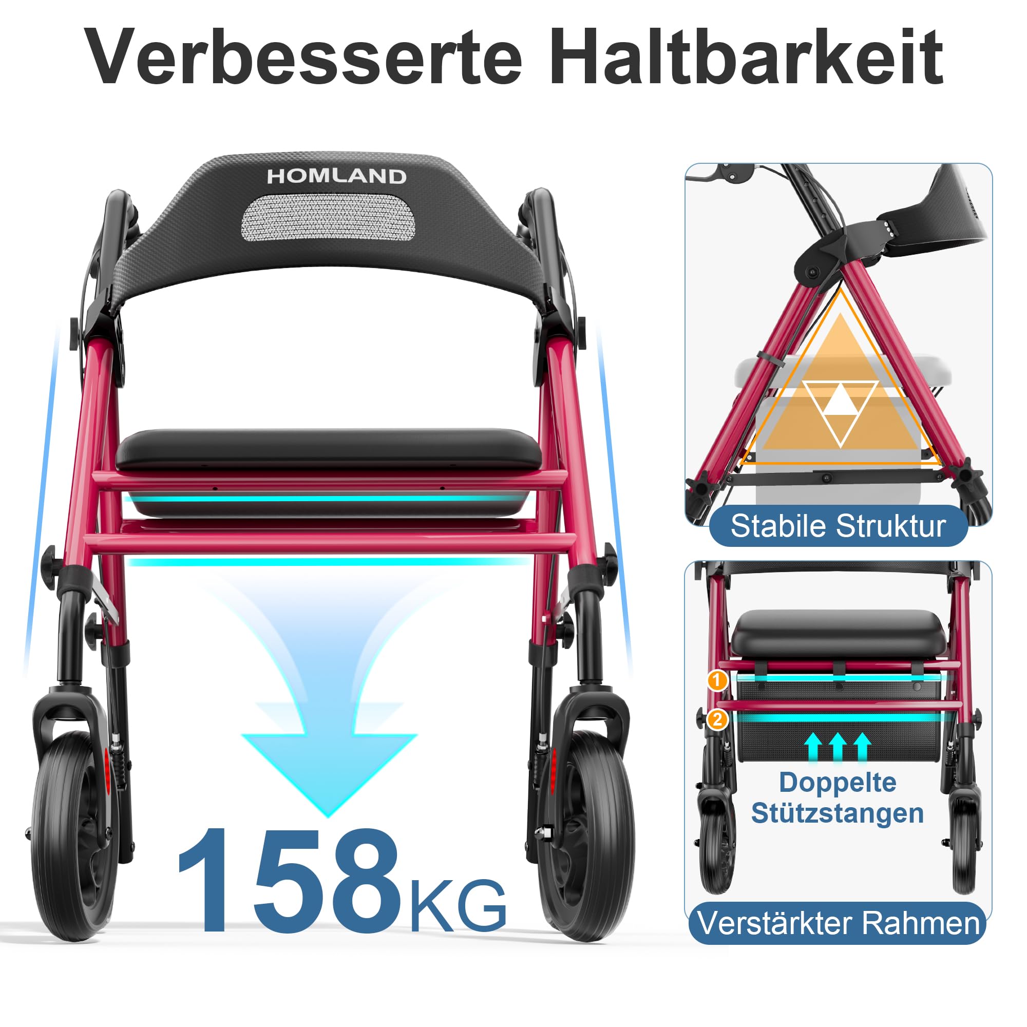 DURABILITY MEETS DESIGN: Our 4 wheel rollator is engineered with a reinforced frame and double support bars, supporting up to 350 pounds. With thickened tubing and robust wall construction, it guarantees durability and stability for every step.