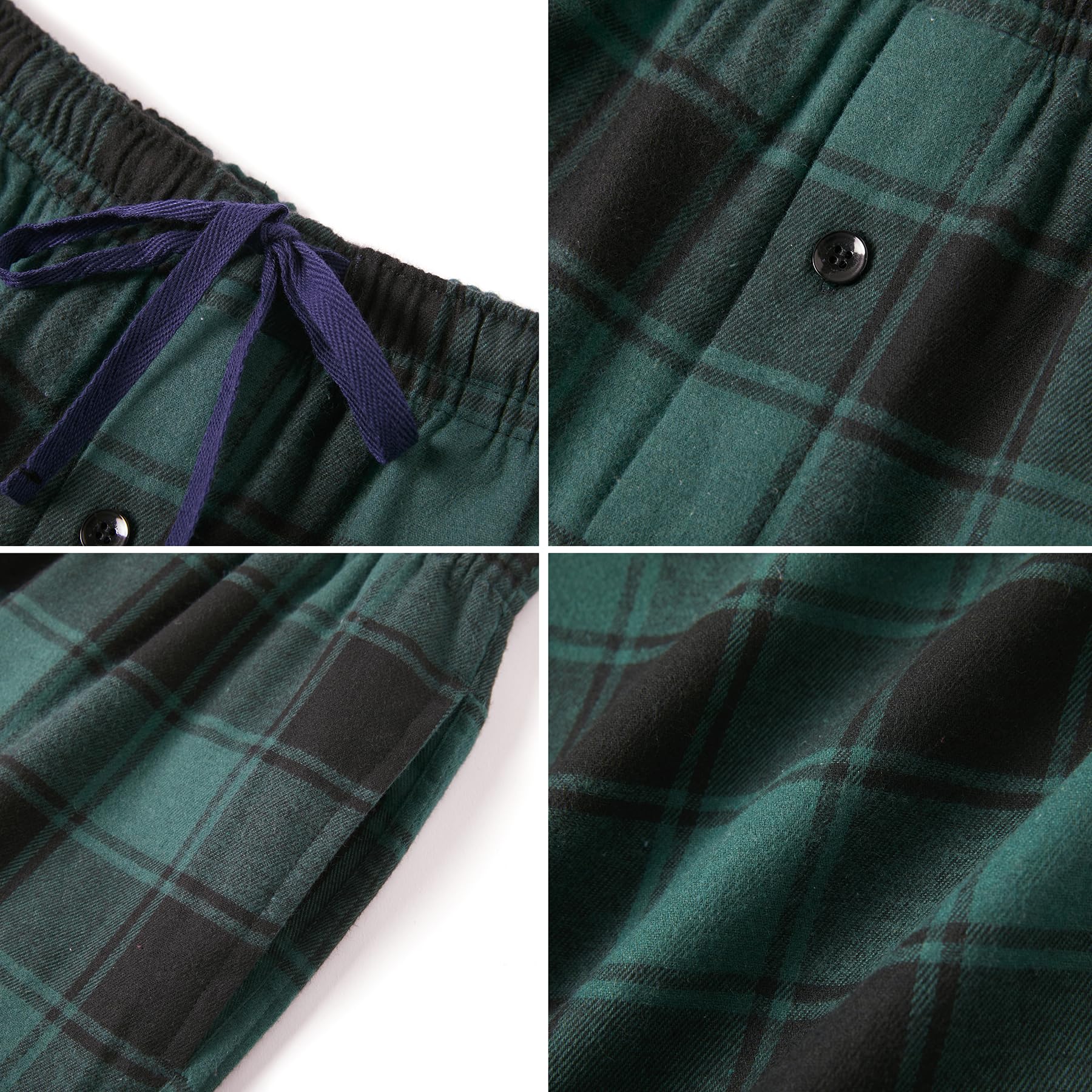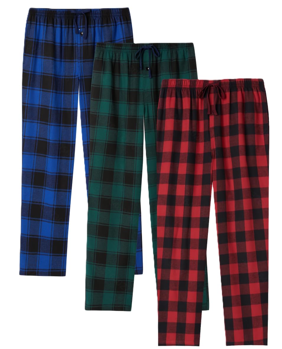 【Functional Design】Our pajama pants for men come with two side pockets and drawstrings, allowing you to carry your phone or keys with ease and adjust the waistband for a custom fit. The pockets on our flannel pajamas for men are deep and roomy, providing enough space to store your essentials. The drawstrings are made from long lasting materials, ensuring they don't fray or snap with frequent use.