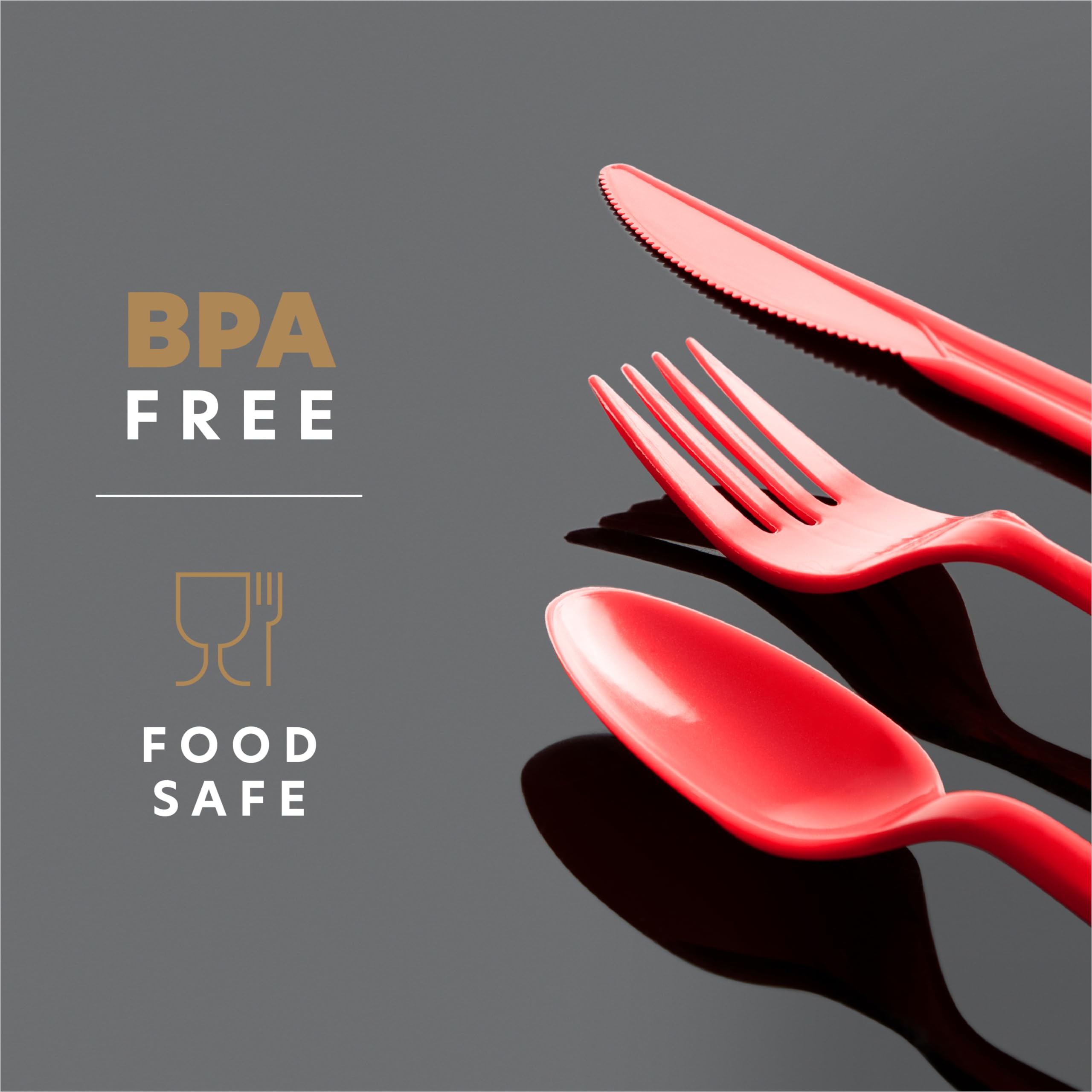 Medium weight plastic cutlery for parties, dinners, and more. Made with food safe and quality BPA free plastic.