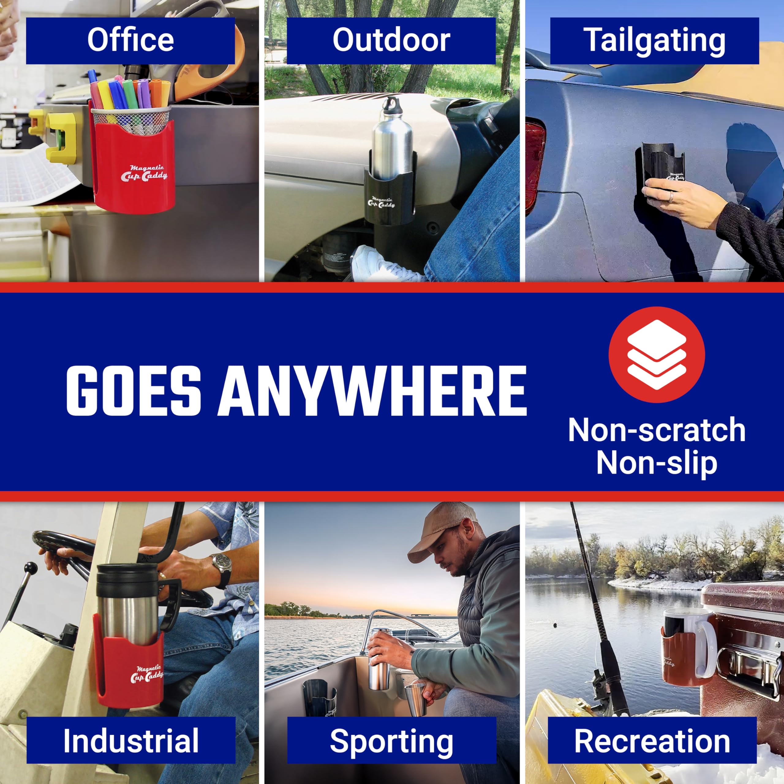 HEAVY-DUTY STRONG MAGNET: Attaches securely to ferrous metal surfaces; keeps drinks steady on any toolbox, cabinet, or vehicle wall, even during movement