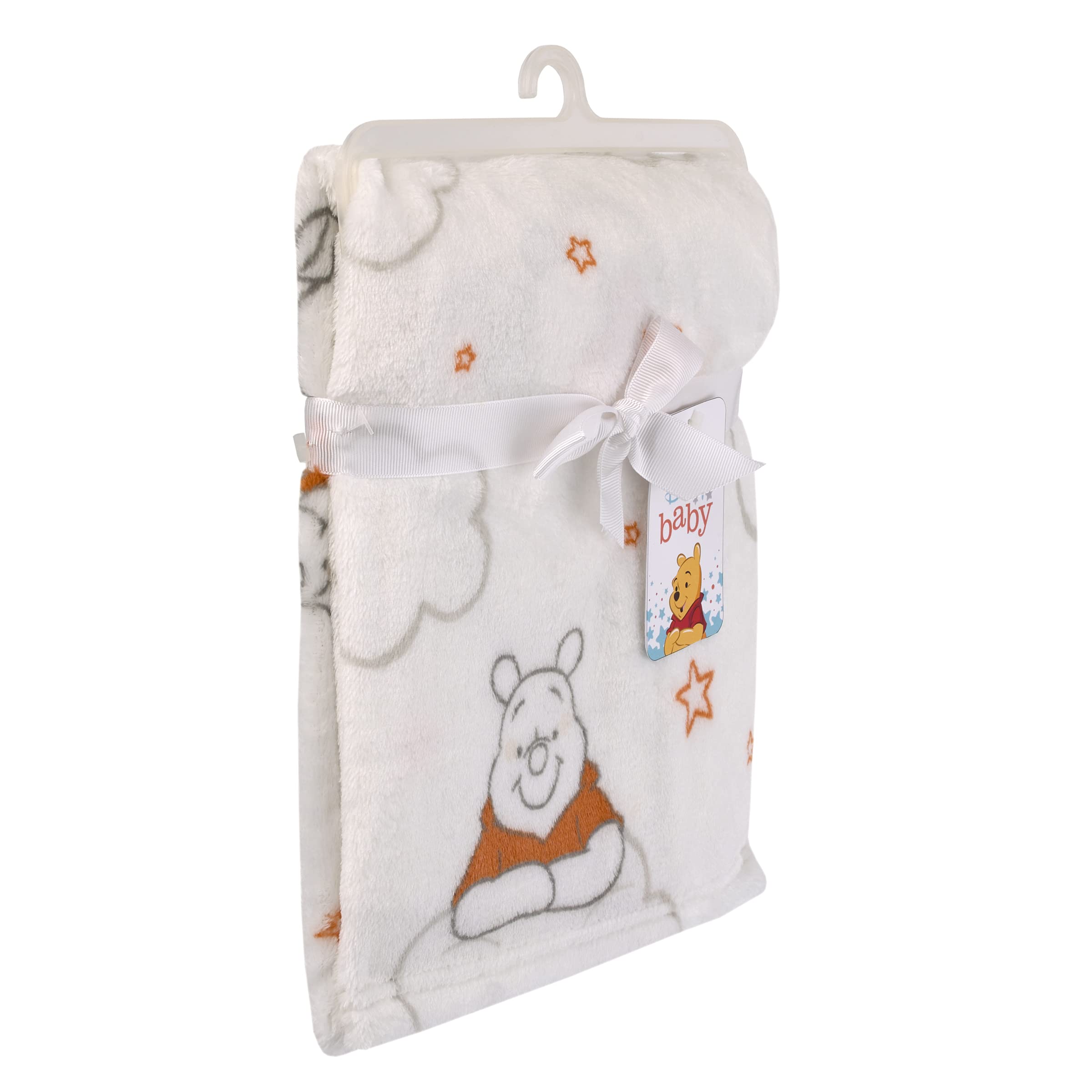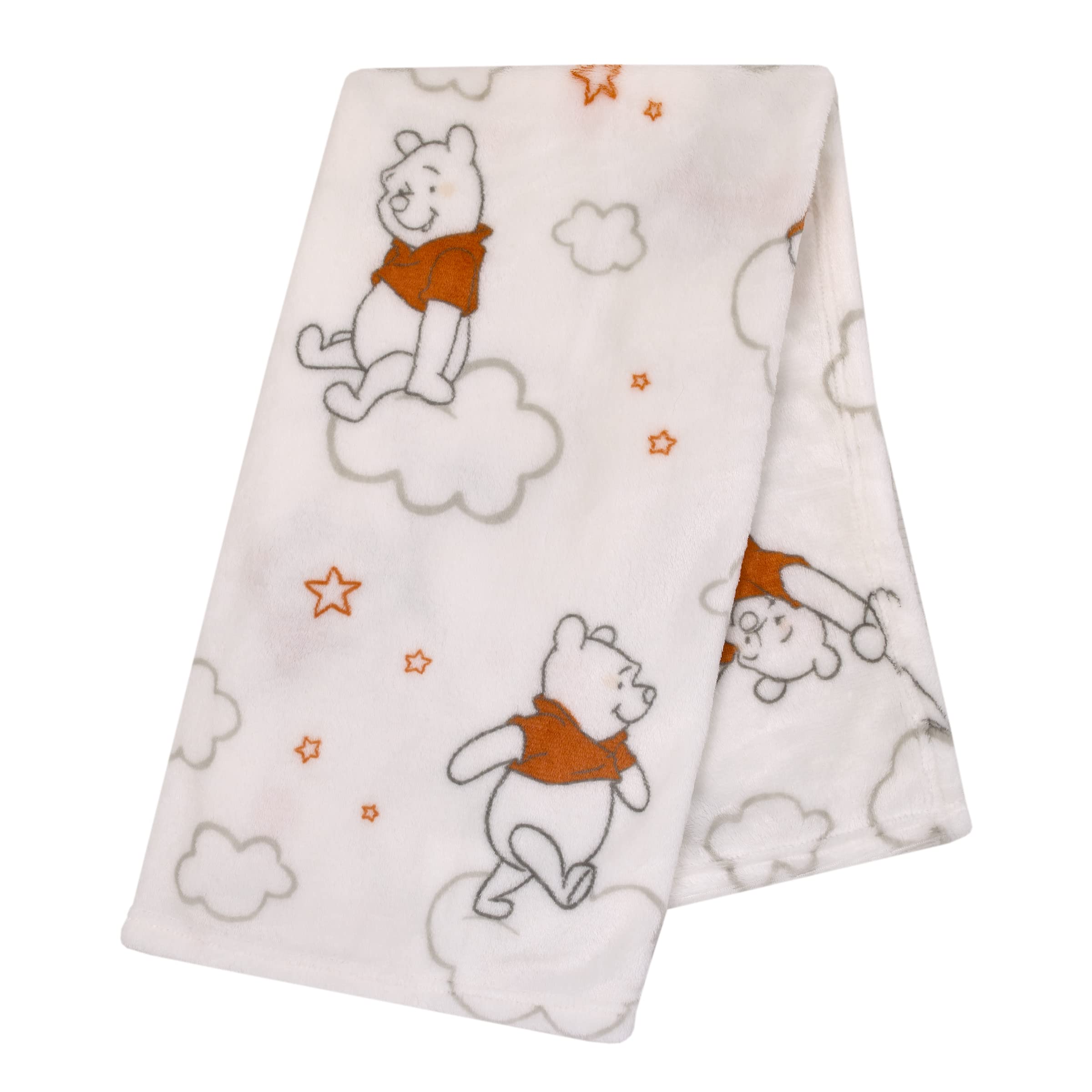 Sweet plush baby blanket with an allover pattern of Winnie the Pooh