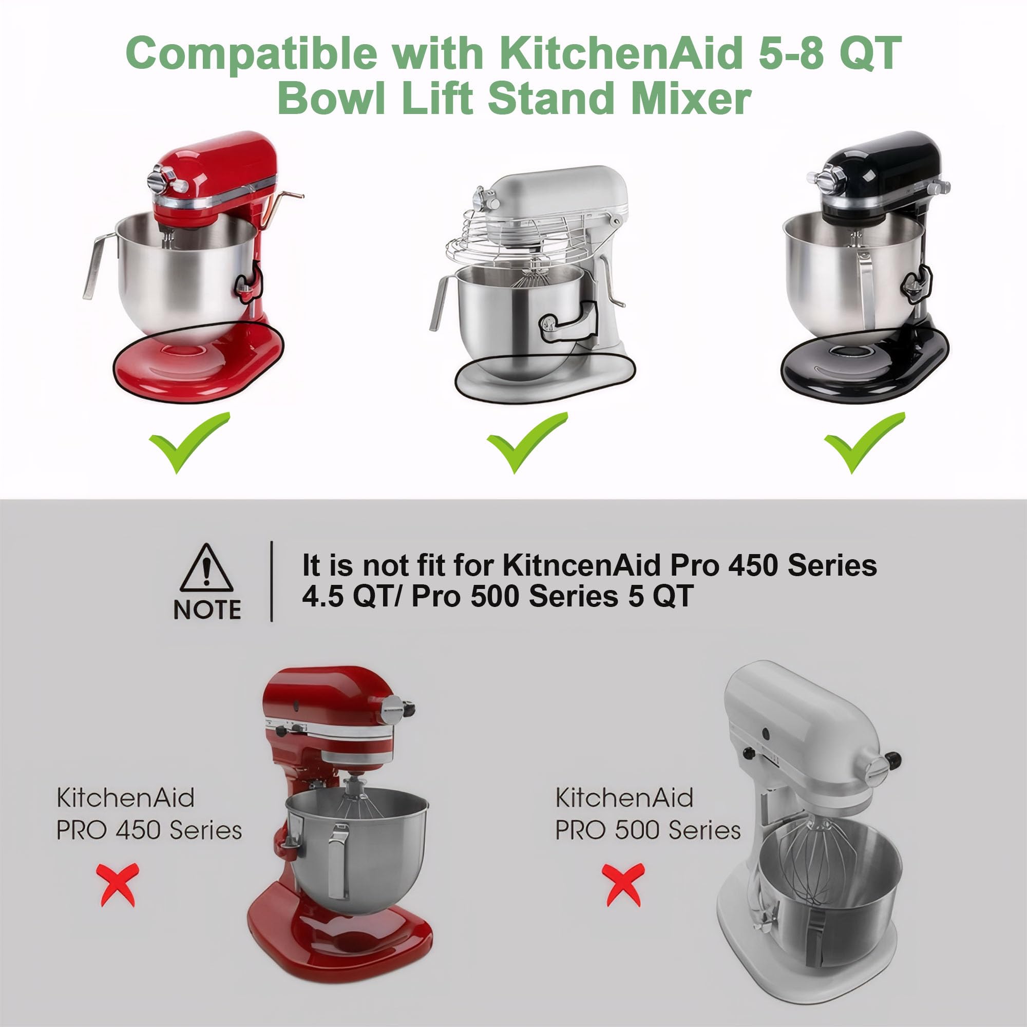 WARM TIPS-Our appliances sliders for mixer is only compatible with Kitchen Aid 5-8 Qt Bowl-Lift Stand Mixer. Please measure your appliance before purchasing for best results. Any reference to 'Kitchenaid' is for product compatibility only