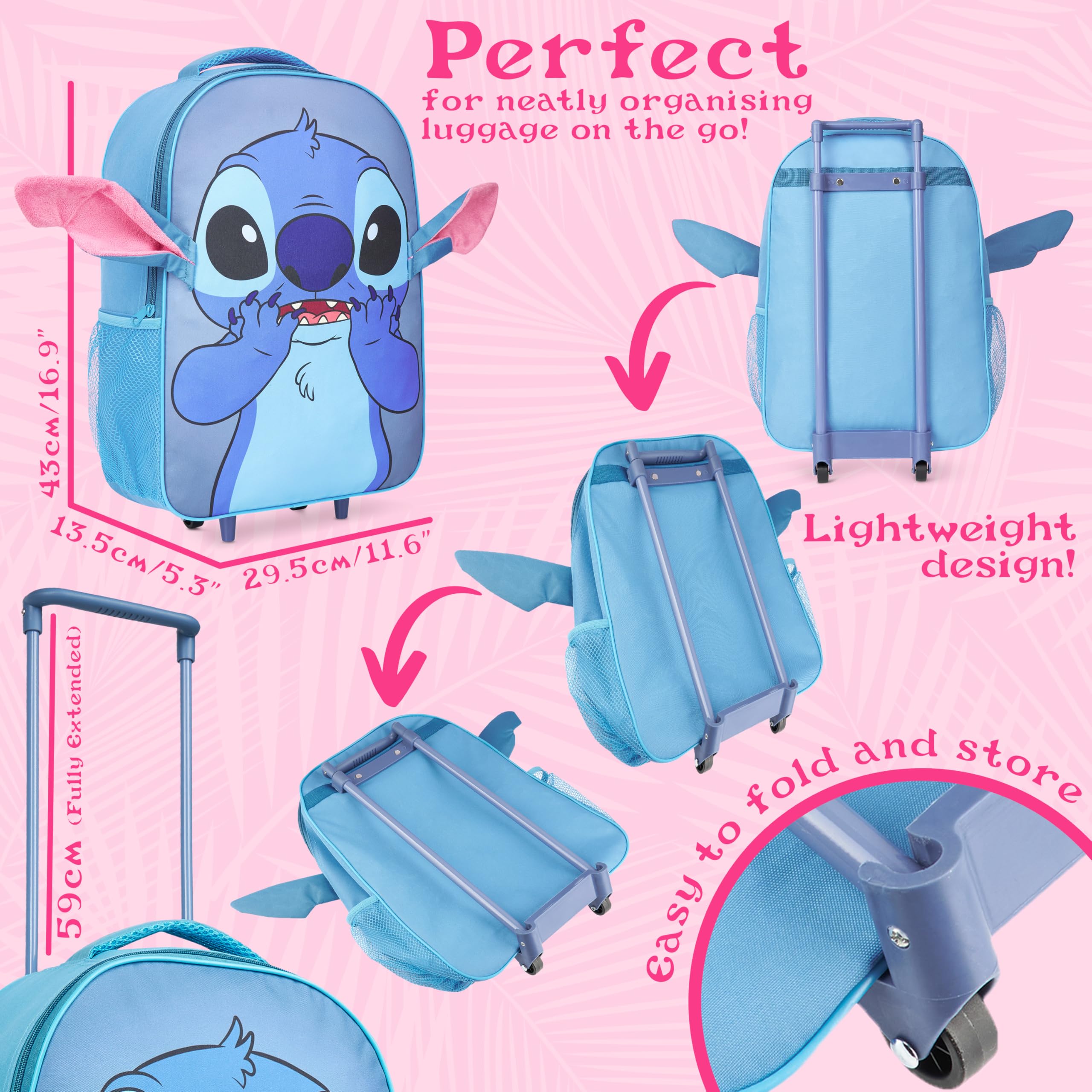 Official Disney Merchandise - Featuring a cute Stitch design, this fun hand luggage bag is officially licensed Disney merchandise and makes the perfect travel companion for young fans