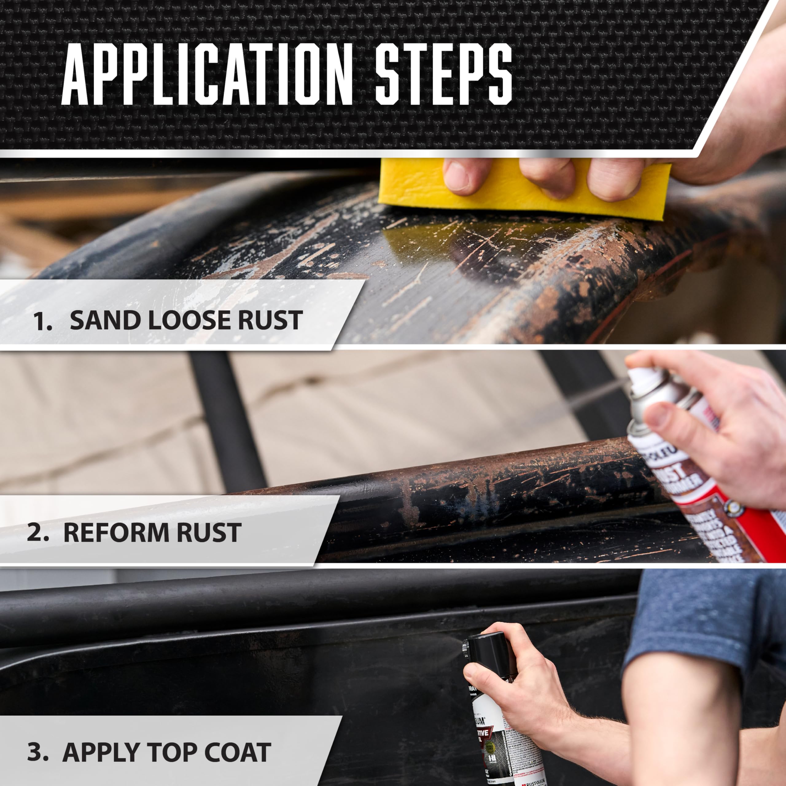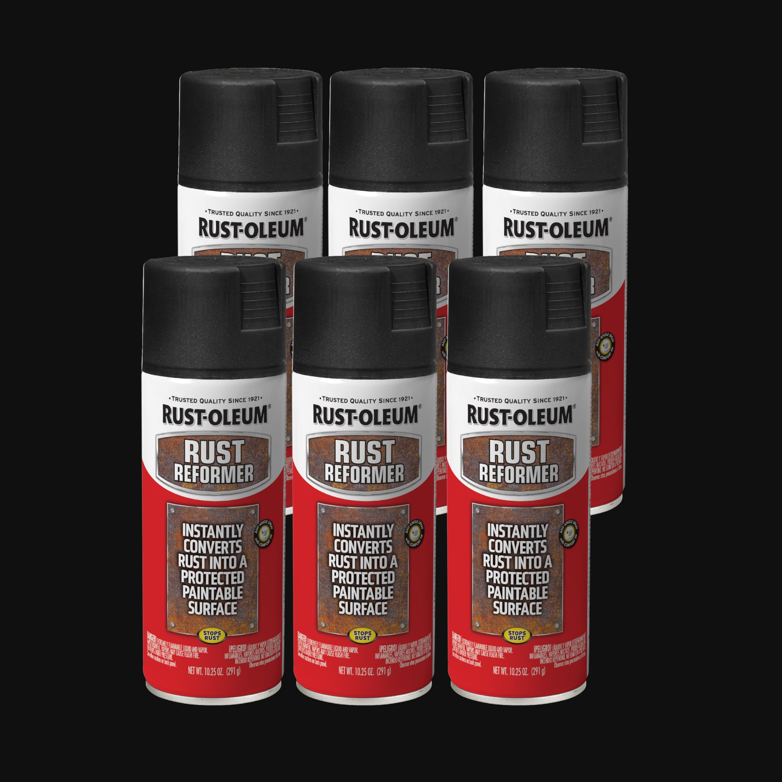 Rust-Oleum Rust Reformer instantly bonds with rust and transforms it to a non-rusting, flat-black paintable surface. Formula contains rust preventive technology that hinders future rust. Unique product prepares rust for a new coat of paint and saves the effort of sanding rust all the way down to bare metal. Spray can features a comfort spray tip with wider finger pad that reduces fatigue caused by continuous spraying.