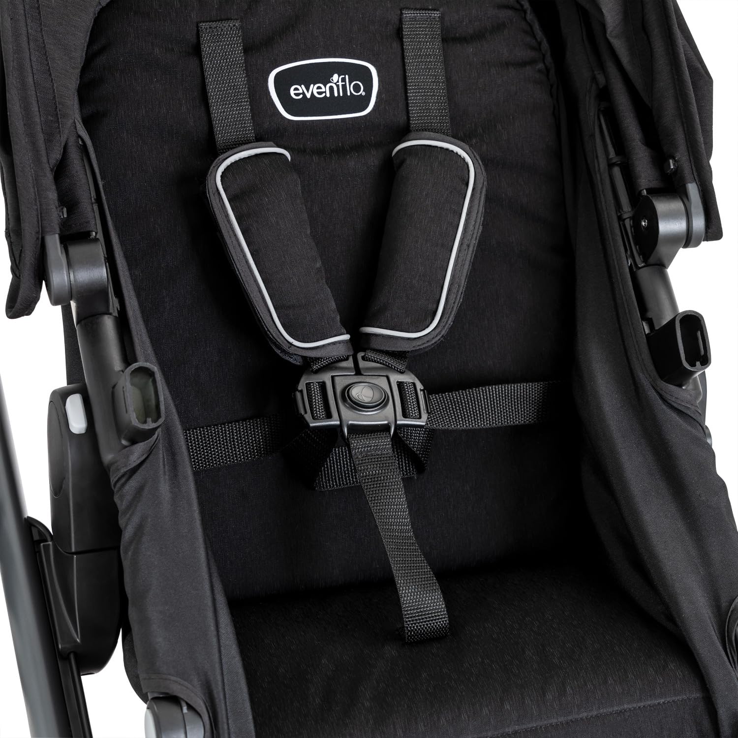 The Evenfloยฎ Pivot Xpandโข Stroller Second Seat is the perfect addition for your growing family! The seat easily and quickly attaches with no tools or adapters. On your stroller, simply slide the main seat attachment up to create extra space and flip out the front seat attachment to click your second seat into place. Two children can now ride at once. For babies, the second seat effortlessly transforms to carriage mode, so your baby can lie flat and stretch out. The seat easily clicks onto the attachments in both parent- and forward-facing modes, giving you multiple riding con๏ฌgurations. The canopy can be adjusted to one of three heights as your child grows. The canopy shields your precious cargo from sun, wind and rain, while the peek-a-boo window allows you to keep an eye on your baby at all times. And the canopy can be adjusted to one of 3 heights to accommodate your growing child. As your family grows, so can your stroller! The seat can recline into 3 different positions with an easy one-handed tilt, while the footrest can be adjusted to any one of 6 positions. The toddler seat fits children up to 55 lb and 43 in. The seat comes with a 5-point harness and a detachable bumper bar, making it a breeze to get your child in and out of the seat. Compatible with the Evenflo Stroller Child Snack Tray with Snack Cup (sold separately). Compatible with the Pivot Xpand Travel System and Pivot Xpand Standalone Stroller. Itโs been 100 years and Evenflo continues to push the boundaries in baby and childrenโs gear design and innovation. We meet the needs of new generations of parents by focusing on what they really care about: leading-edge safety, smart design and technology, and convenient features that help them enjoy the journey of parenthood.