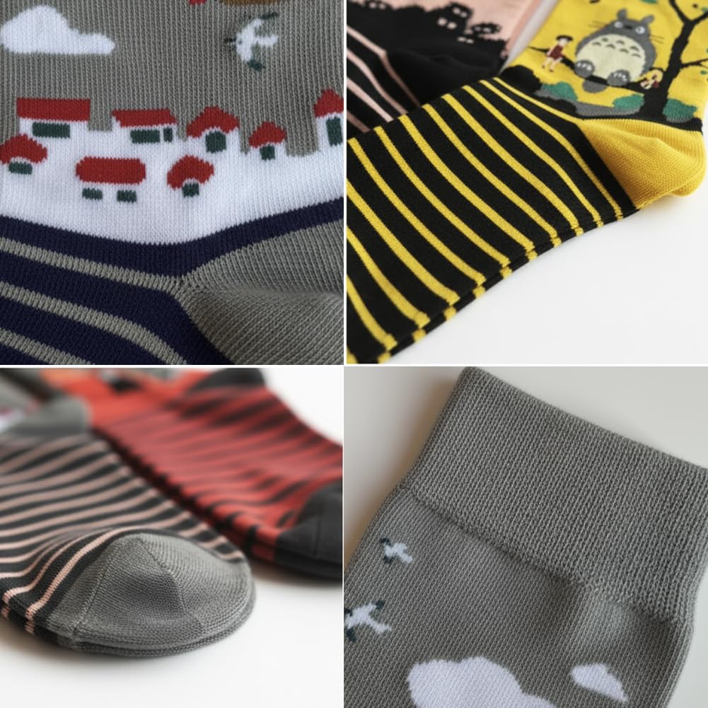 Colorful Striped Assorted Girl Designs. Funny design cute girl & Animal print striped patterned socks to complete your stylish look, easy match most casual dressing.