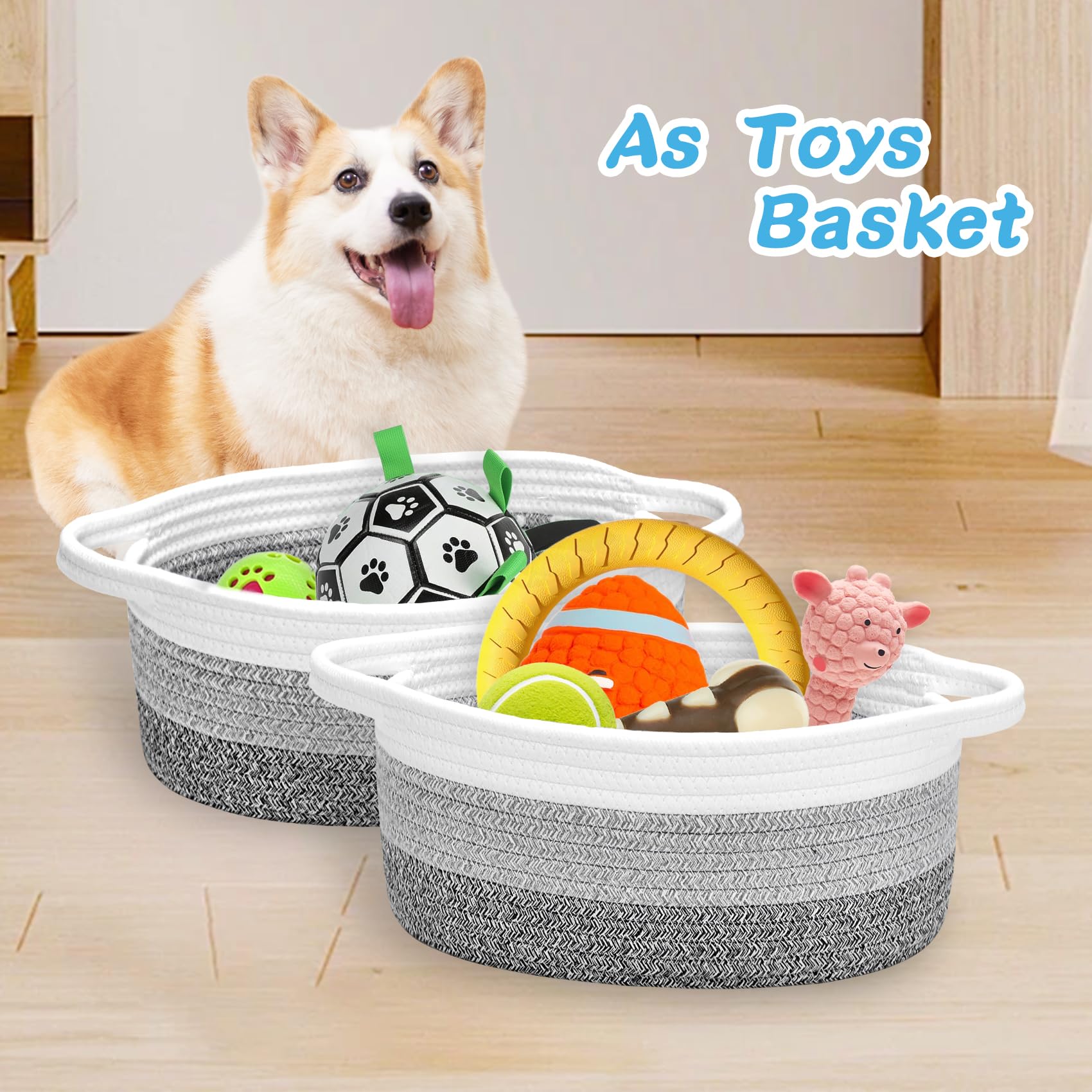 VERSATILE DESIGN: White rope basket features sturdy handles for easy carrying and transportation of toys, supplies, or decorative items
