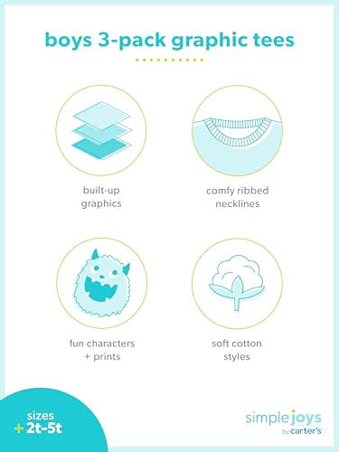 Description The Simple Joys by Carter's 3-Pack Long Sleeve Shirts for toddler and big kid boys offer a perfect combination of comfort, style, and practicality for everyday wear. Designed to keep up with active kids, these shirts come in a variety of fun prints and vibrant colors that make dressing easy and enjoyable. Whether you're getting ready for a day of play or layering up for cooler weather, these shirts are a versatile choice for any wardrobe. Each pack includes three long-sleeve shirts, each featuring a unique design—ranging from playful patterns to bold colors, offering a mix that suits any personality. These shirts are made from soft and breathable fabric, providing all-day comfort for your little one while allowing for easy movement during playtime or school activities. The shirts feature a classic fit, with long sleeves that provide warmth and coverage. The simple, pullover design makes them easy to get on and off, while the tagless construction ensures there’s no itching or irritation at the neck.