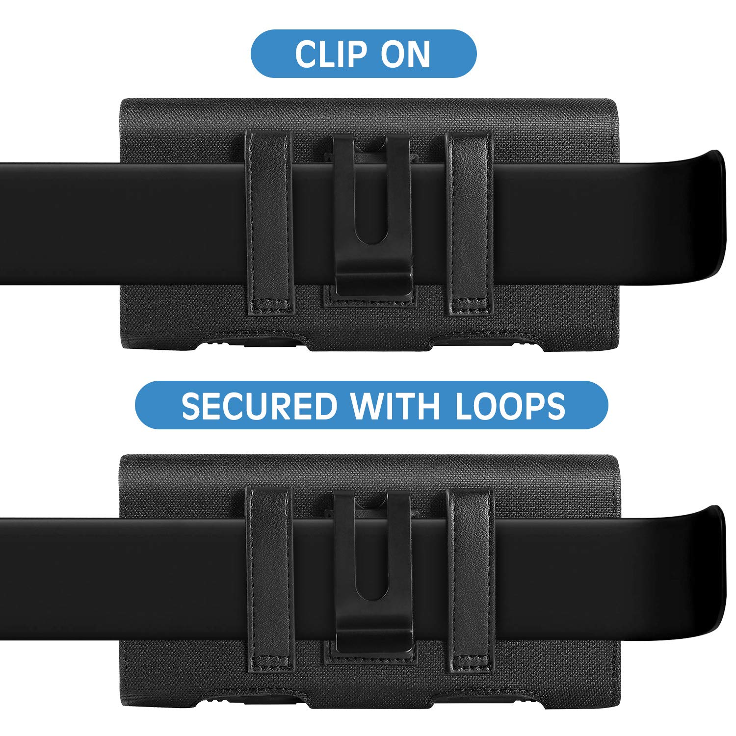 Durable metal belt clip + 2 additional belt loops for extra security + magnetic closure