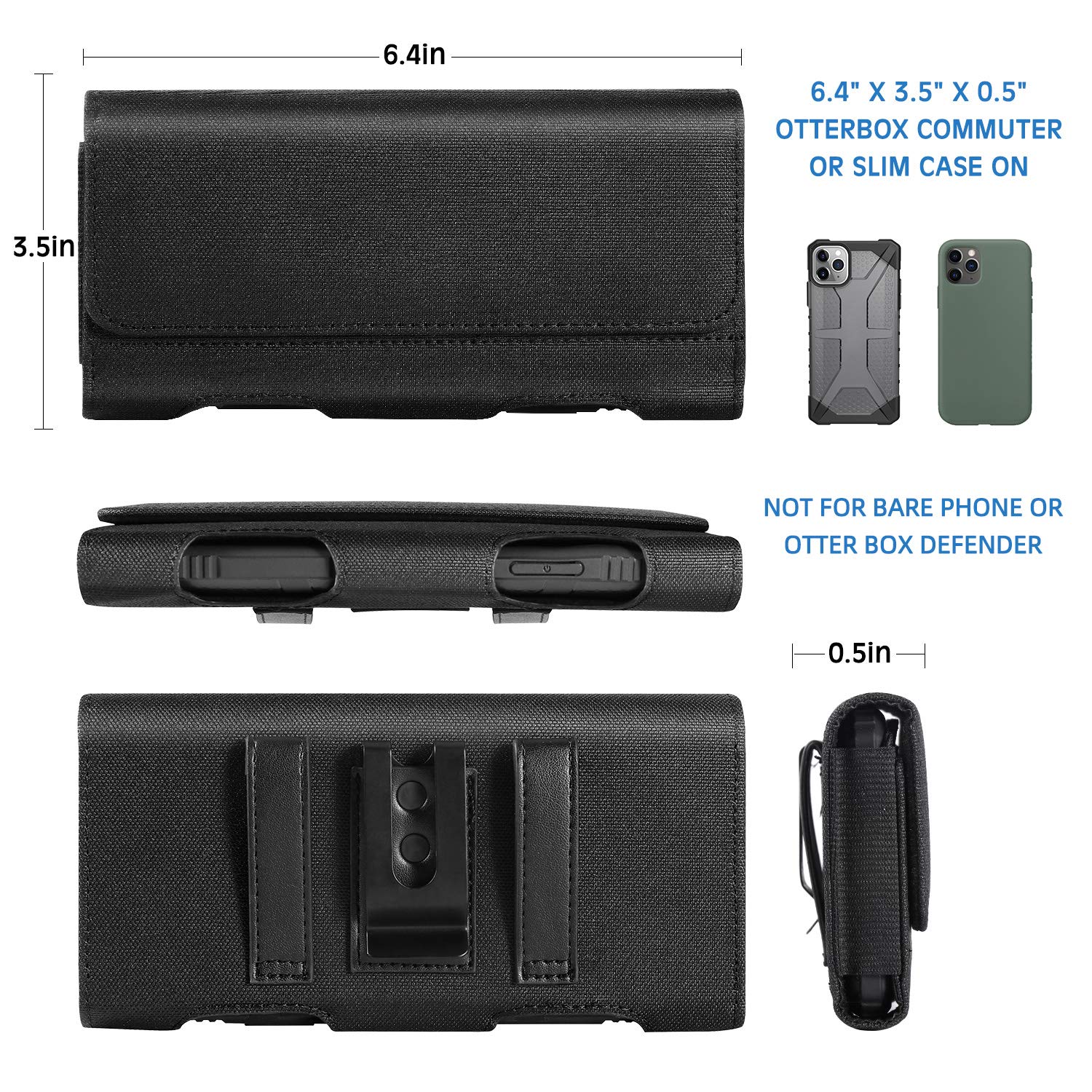 Inner Dimensions: 6.5" x 3.5" x 0.5"(L x W x H). Fits for big size smartphone with a case, If you don't confirm whether suitable for your phone, you can send message to me. We will reply to you ASAP.