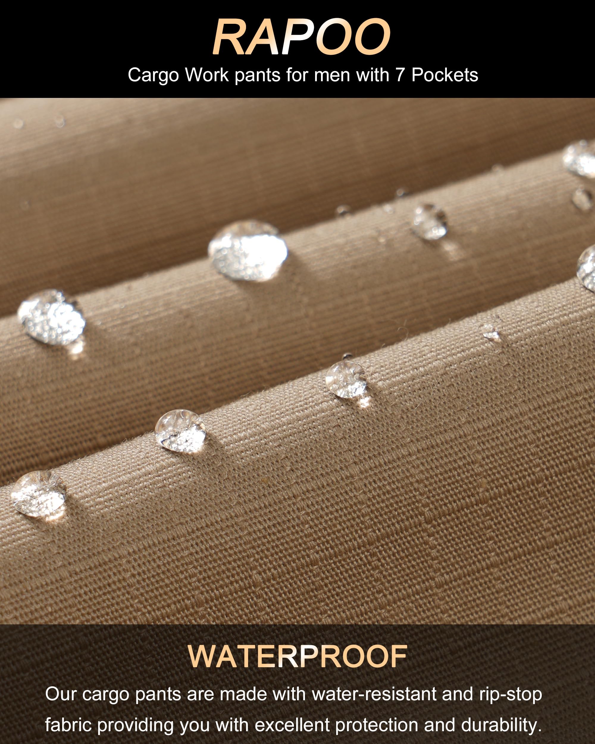 【Ripstop Fabric】--The Rapoo work pants are crafted from ripstop fabric that has undergone an excellent water-repellent treatment, keeping you dry all day long. They are designed to be breathable, scratch-resistant, durable, water-resistant, comfortable, flexible, and resistant to wrinkles and fading.