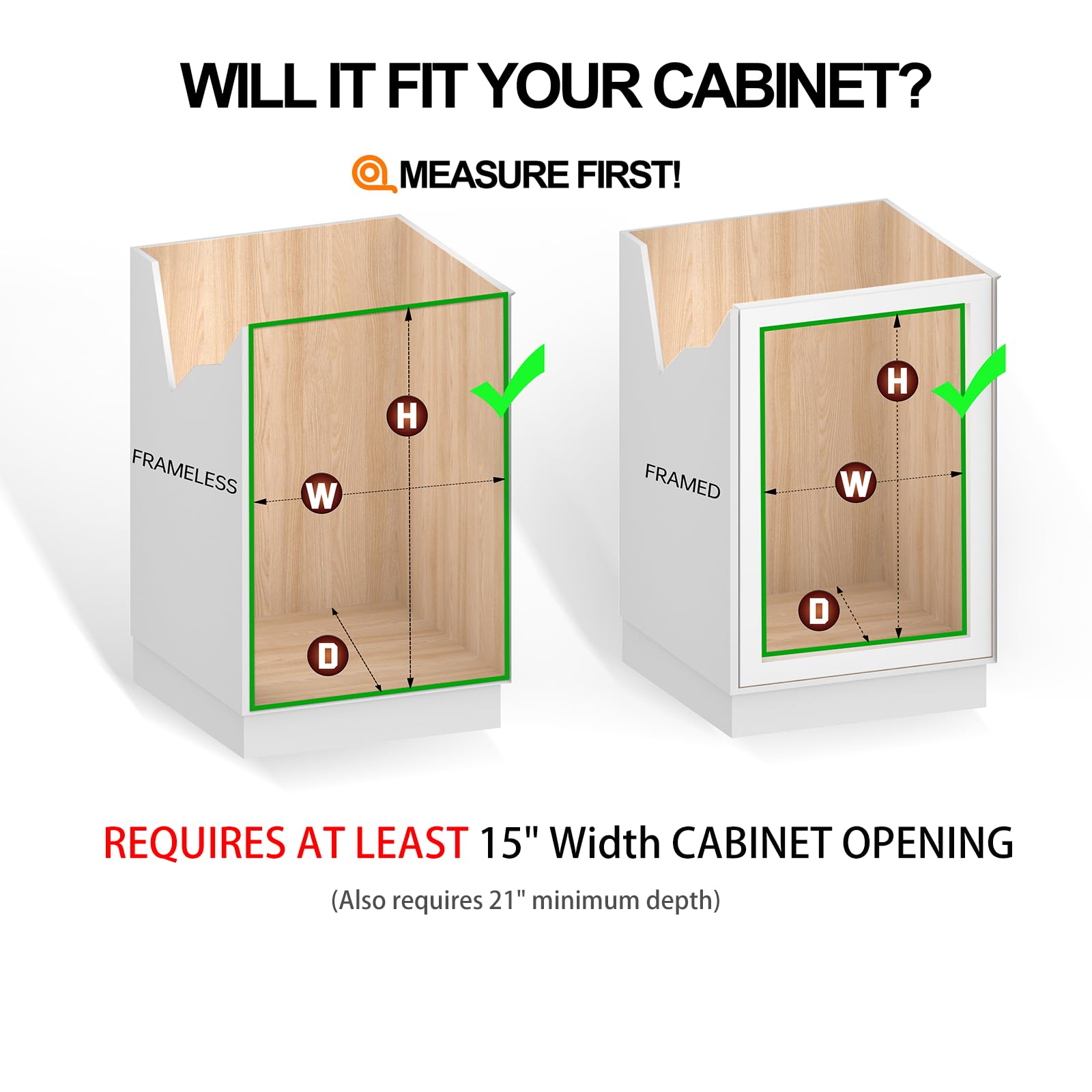 【 Pull-Out Shelf 】: Requires a minimum cabinet opening of 15"W and 21"D