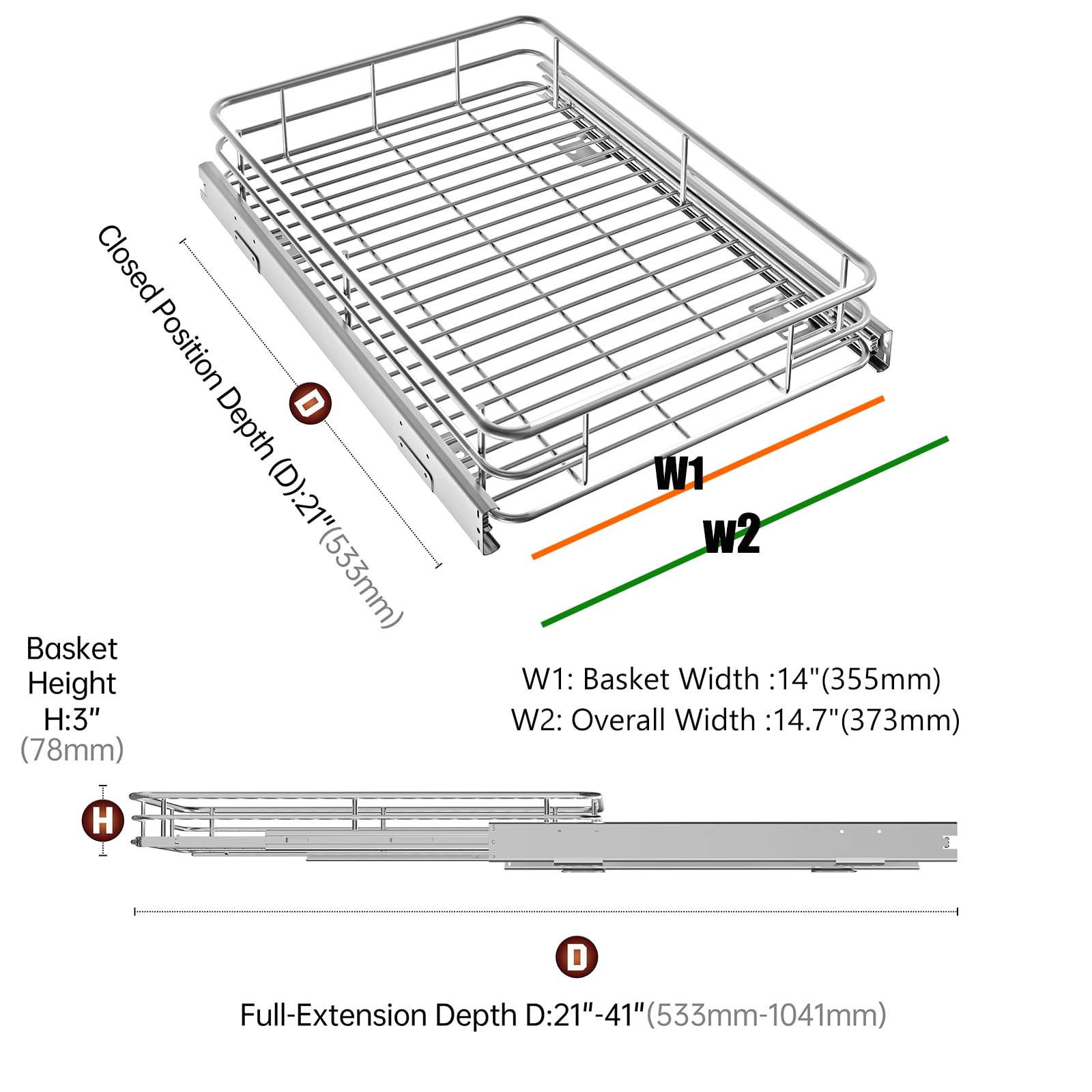 【 Available in Multiple Sizes 】: We offer pull-out baskets in multiple sizes, Including widths of 11, 14, 17, 20, and 22 inches, Designed to fit most standard cabinets and accommodate your various needs