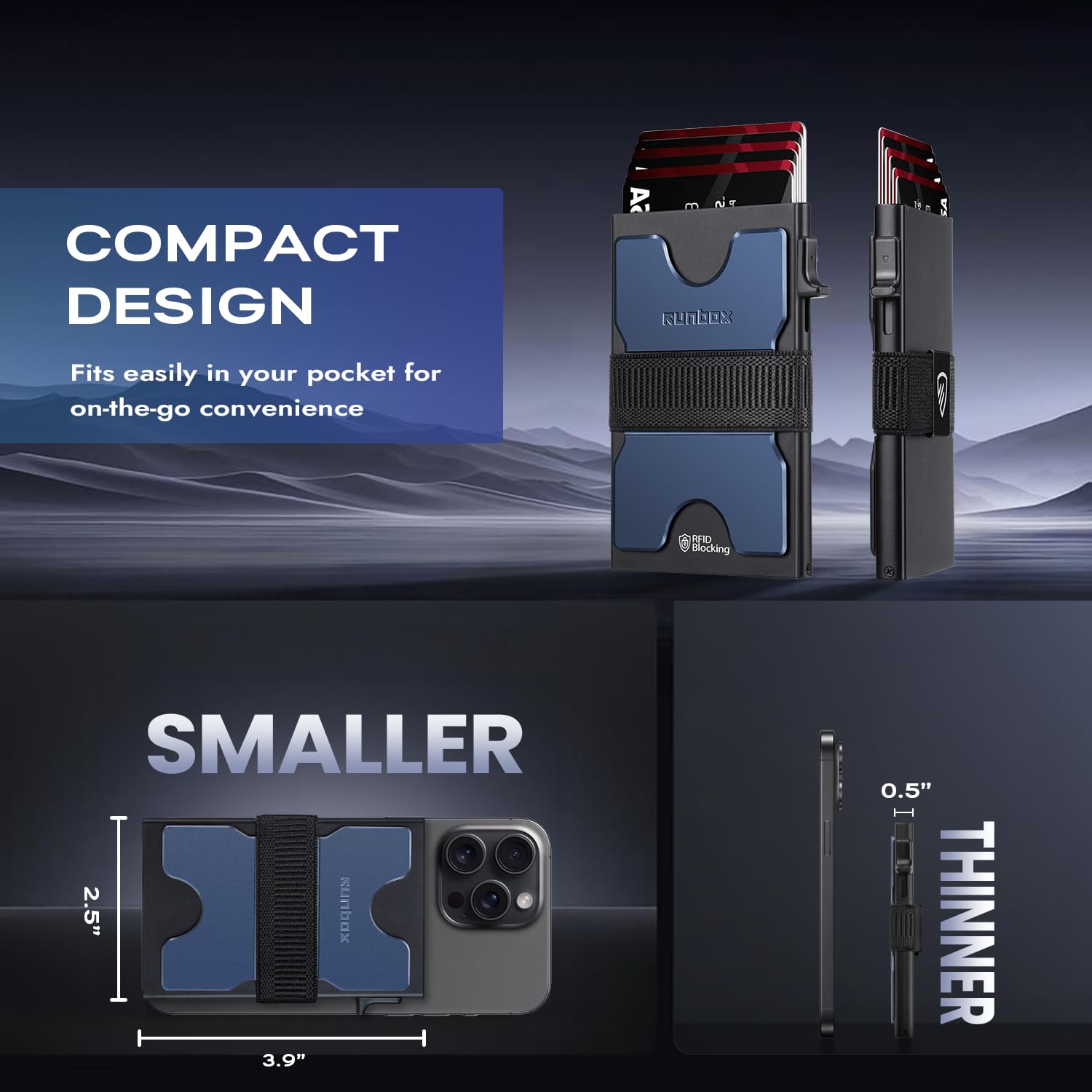 SLIM WALLET FOR MEN with Ultra Thin & Lightweight Design: At just 0.5" thick and 2.6oz, this minimalist tactical wallet slips seamlessly into any pocket. Dimensions: 3.9"x2.5" – perfect for discrete everyday carry. The innovative expandable backplate adds storage without bulk, letting you ditch oversized wallets