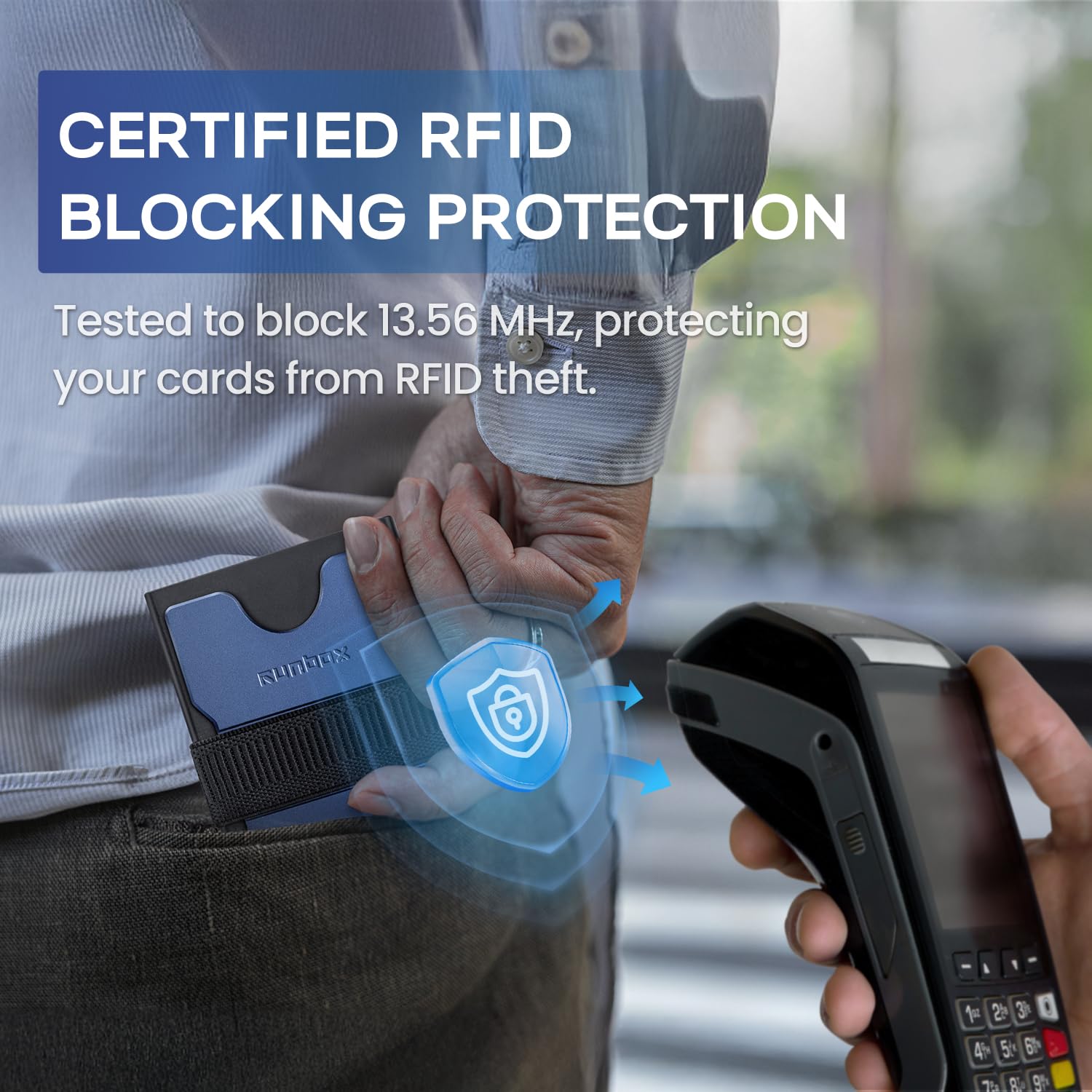 Military-Grade RFID/NFC Protection: Built with solid aluminum shielding, this smart wallet blocks 13.56MHz signals to prevent digital theft. Safeguard credit cards and IDs from skimming devices – your data stays secure
