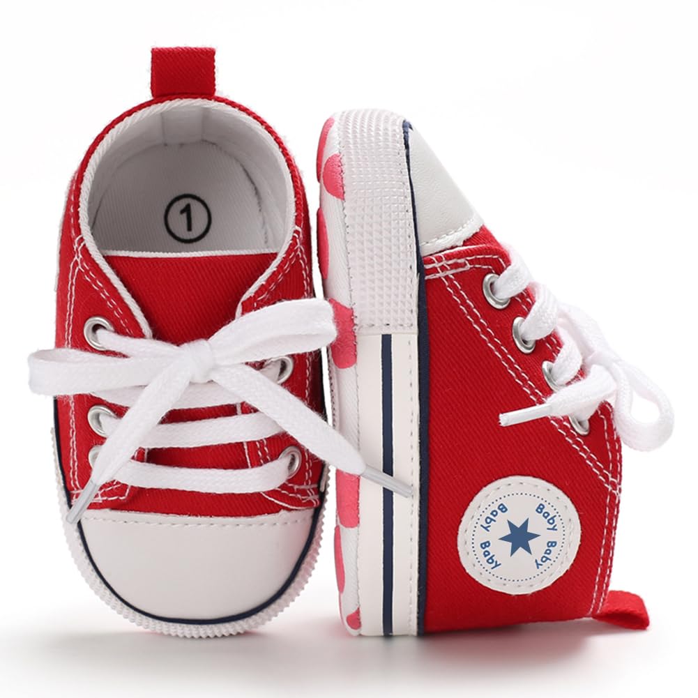 【Quality】-- Safety Tested for Peace Of Mind, and look aesthetic,No Any Stimulation to The Skin of Baby.This baby sneakers are made of high quality soft and breathable canvas upper, which is very good for baby's feet growth in crib.