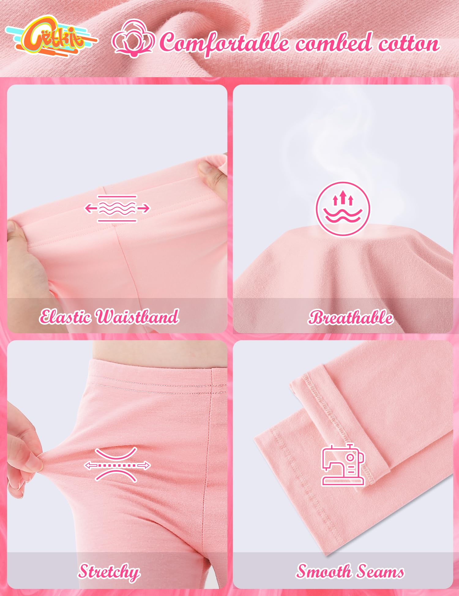 【High-Quality Cotton Leggings for Toddler Girls】 These girls' leggings are made of 94% cotton and 6% spandex. The fabric is stretchy, ultra-soft, and breathable, making these toddler girl leggings 3t very comfortable and flexible. All leggings for girls are made from premium four-way stretch fabric, with an elastic band sewn into the waistband, which lies flat on the waist for a comfortable and good fit.