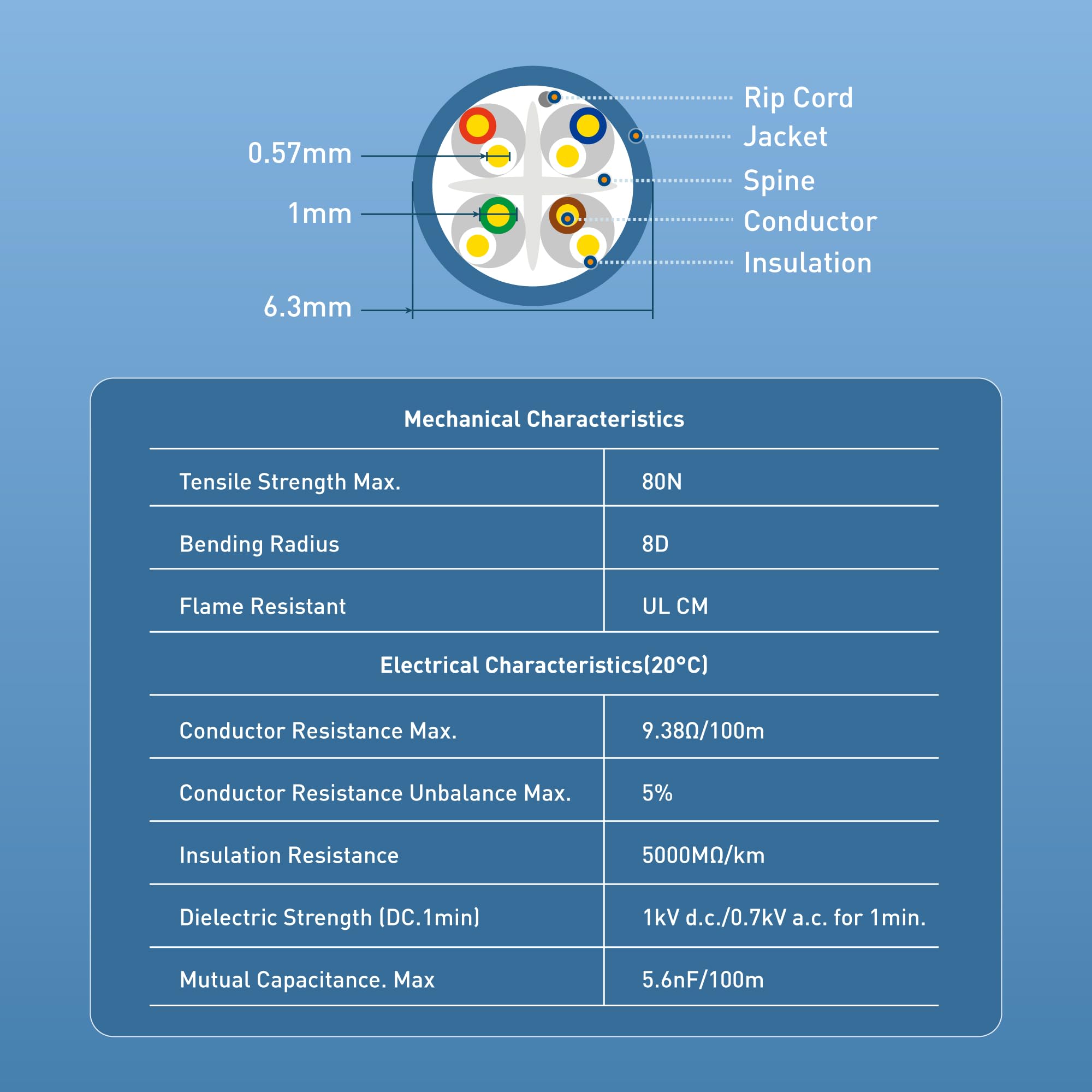 Pure Copper Conductors: Crafted with bare copper conductors for enhanced cable performance, this Cat 6 bulk Ethernet cable meets or exceeds TIA/EIA 568-C.2 standards. The solid copper build ensures reliable data transfer, supports Power over Ethernet (PoE, PoE+, PoE++), and complies with communication cable specifications.