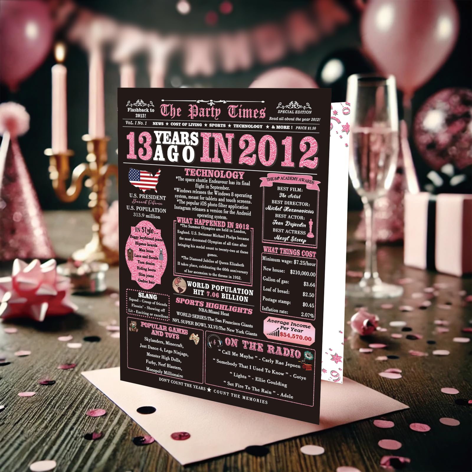 This 13th birthday card is perfect for girls, featuring a "Back in 2012" theme with rose gold accents, making her special day unforgettable.