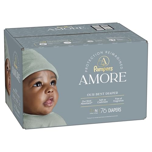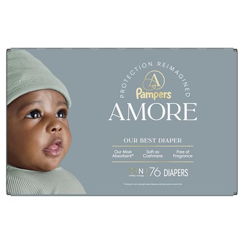 Introducing Pampers Amore—our best diaper. Thoughtfully crafted with 60+ years of Pampers quality and expertise, reimagined for today. Built with 5 layers of protection, it is our most absorbent diaper*. Pampers Amore diapers feature an all-around blowout and leak-guard barrier to help prevent up to 100% of leaks. Plus, they are built with our KeepDry liner for unbeatable dryness and comfort**. These diapers provide premium performance without compromise. They are Dermatologically accredited by the Skin Health Alliance and tested for 1000+ Harmful Chemicals. They are hypoallergenic and free of fragrance, parabens, elemental chlorine and latex (no natural rubber). Because real luxury means peace of mind. Pampers Amore diapers are designed with the finest materials. They are soft as cashmere, making them extra gentle on your baby’s delicate skin. Each diaper features delicate patterns as cute as your little one with a wide wetness indicator that lets you know when they go. Because when it comes to love, there's no such thing as good enough. Give them the best. Pampers Amore—made with love in every detail.among U.S. non-overnight taped diapers; excluding Super Economy Pack **Based on size 4 Pampers Amore. 3 typical wettings of 75ml under 0.5psi pressure. Among day-and-night taped diapers