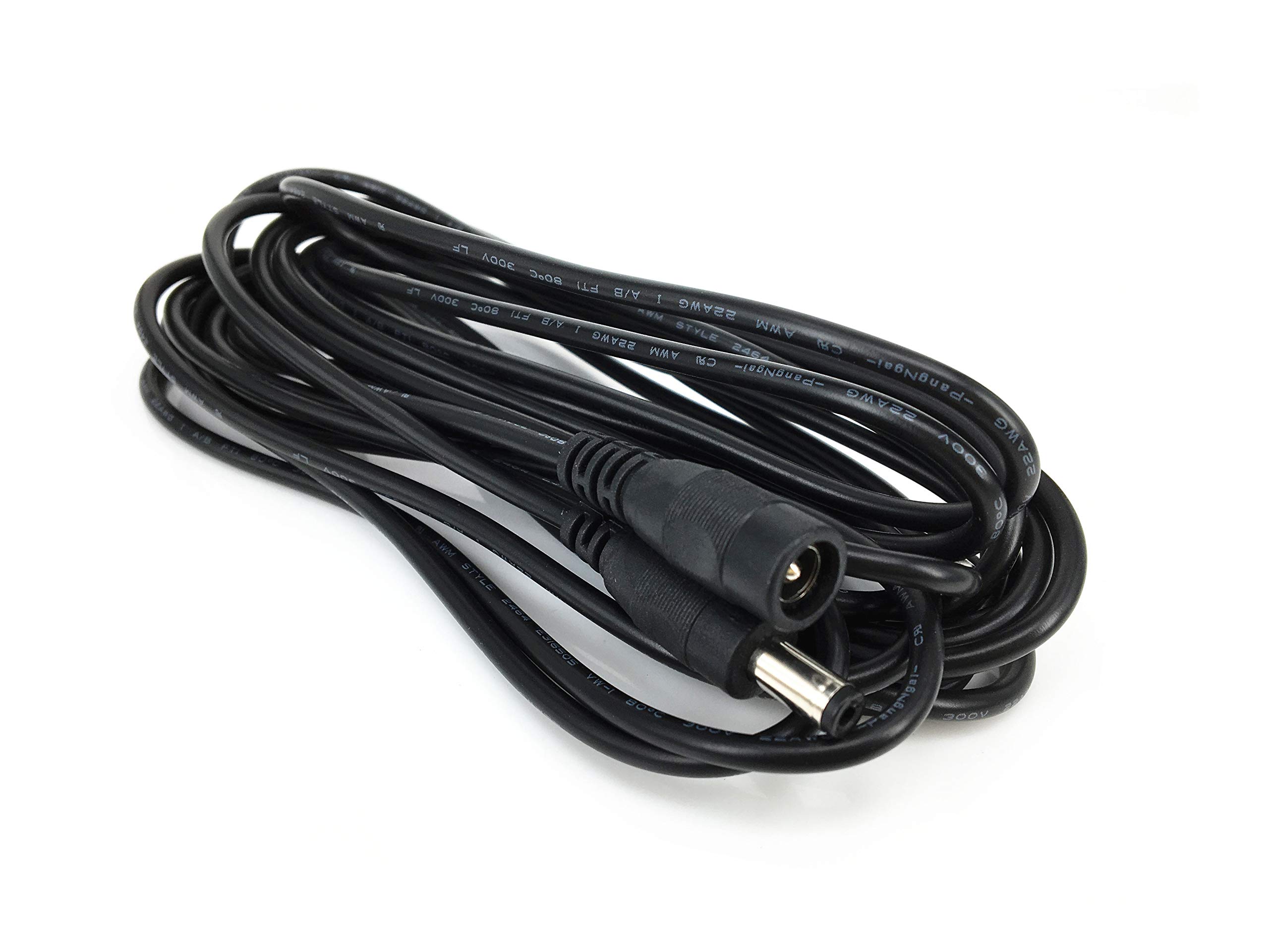 DC barrel plug and receptacle dimensions: 5.5 mm x 2.5mm DC Plug Extension Cable, Male 5.5mm x 2.5 mm connector on one end; female 5.5mm x 2.5mm connector on other end,Length: 500 cm/16.4ft,22 AWG
