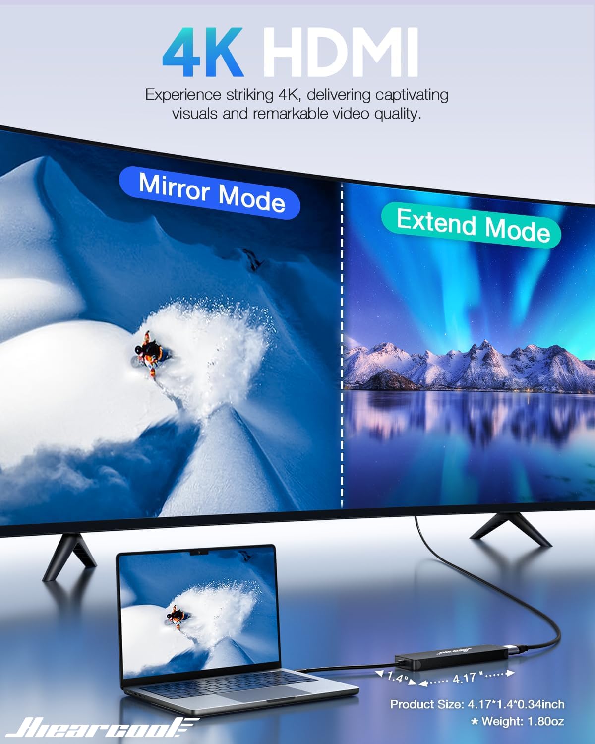 4K HDMI Display – Mirror or extend to monitors/TVs/projectors up to 3840×2160@30Hz (supports 1080p@60Hz). Requires a USB-C port with DisplayPort Alt Mode; not all phones/tablets support video out
